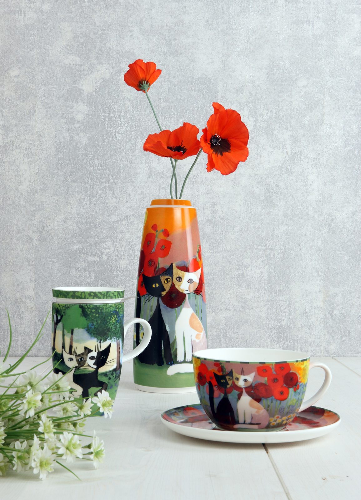 Šálek a podšálek Lestate in giardino, 500 ml / 19 cm, jemný kostní porcelán, R. Wachtmeister, Kočky Goebel