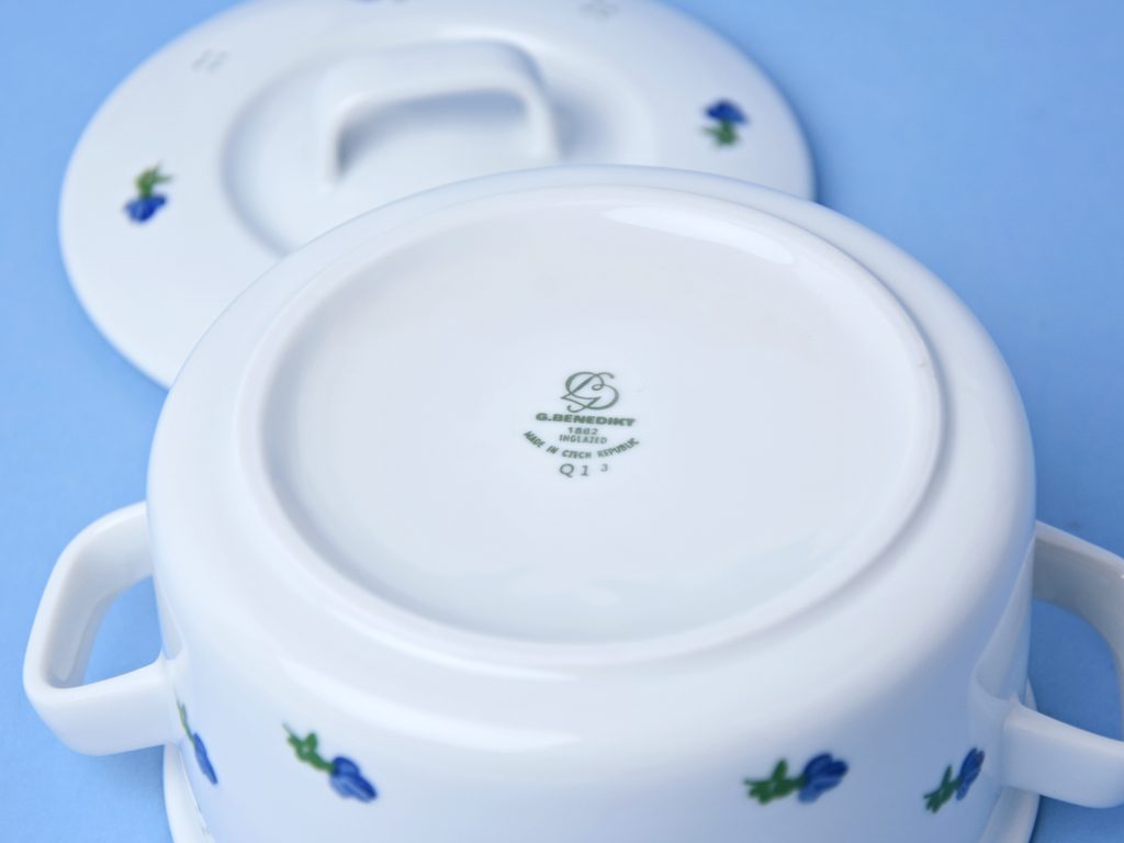 Šálek / kotlík na polévku 500 ml + víčko, modré kvítí + zelená, G. Benedikt 1882