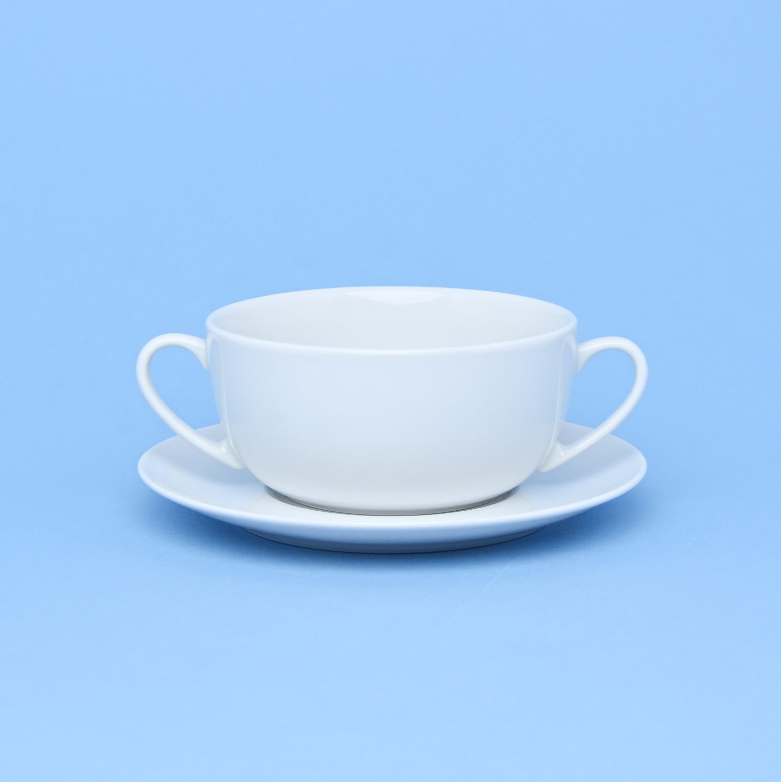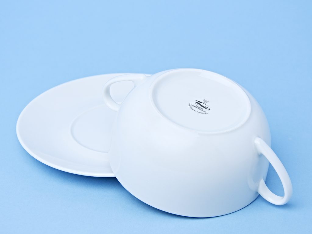 Šálek na polévku 370 ml s uchy + podšálek 17,5 cm, Saphyr bílý, Thun 1794, karlovarský porcelán