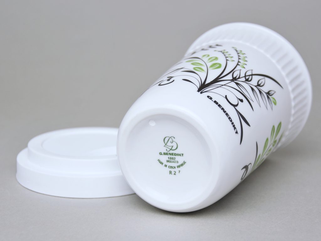 Šálek ToGo 300 ml, Zeleno - černé kvítí, Benedikt dvoustěnka