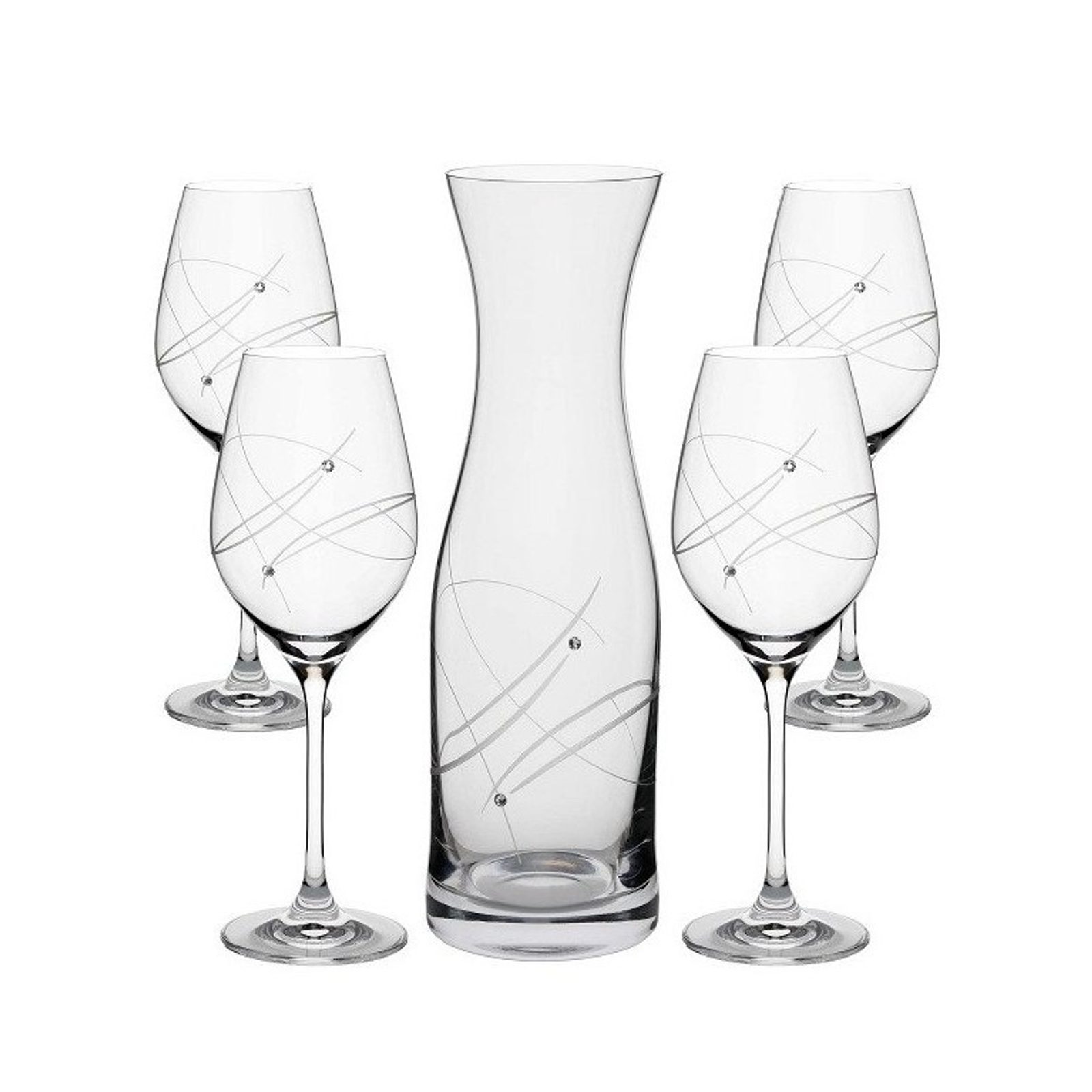 Set Vital 4+1 sklenice na bílé víno 360 ml a karafa 1000 ml, zdobené krystaly Swarovski