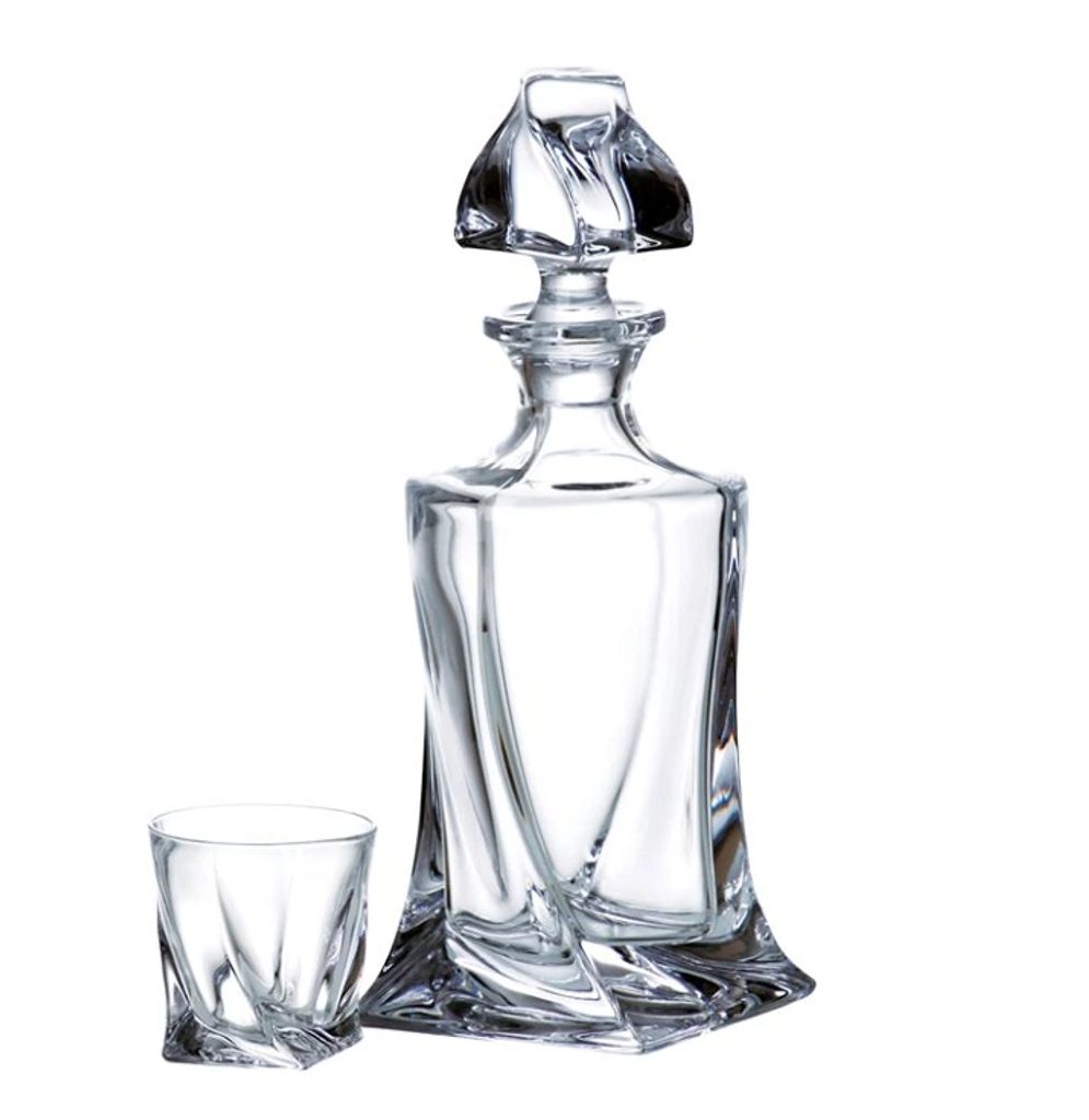 Elegantní likér set, český křišťál Crystalite Bohemia. Kolekce Quadro bezt dekoru.