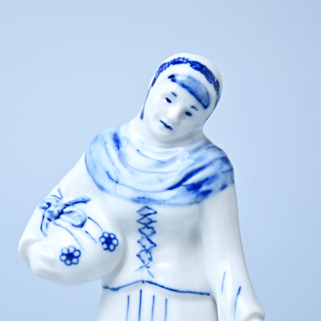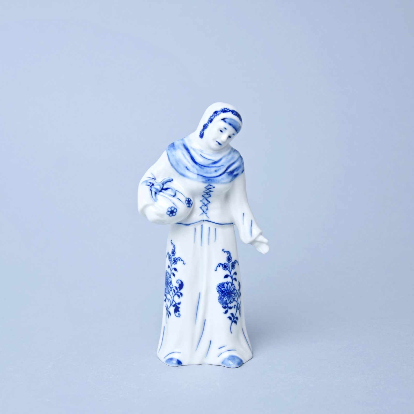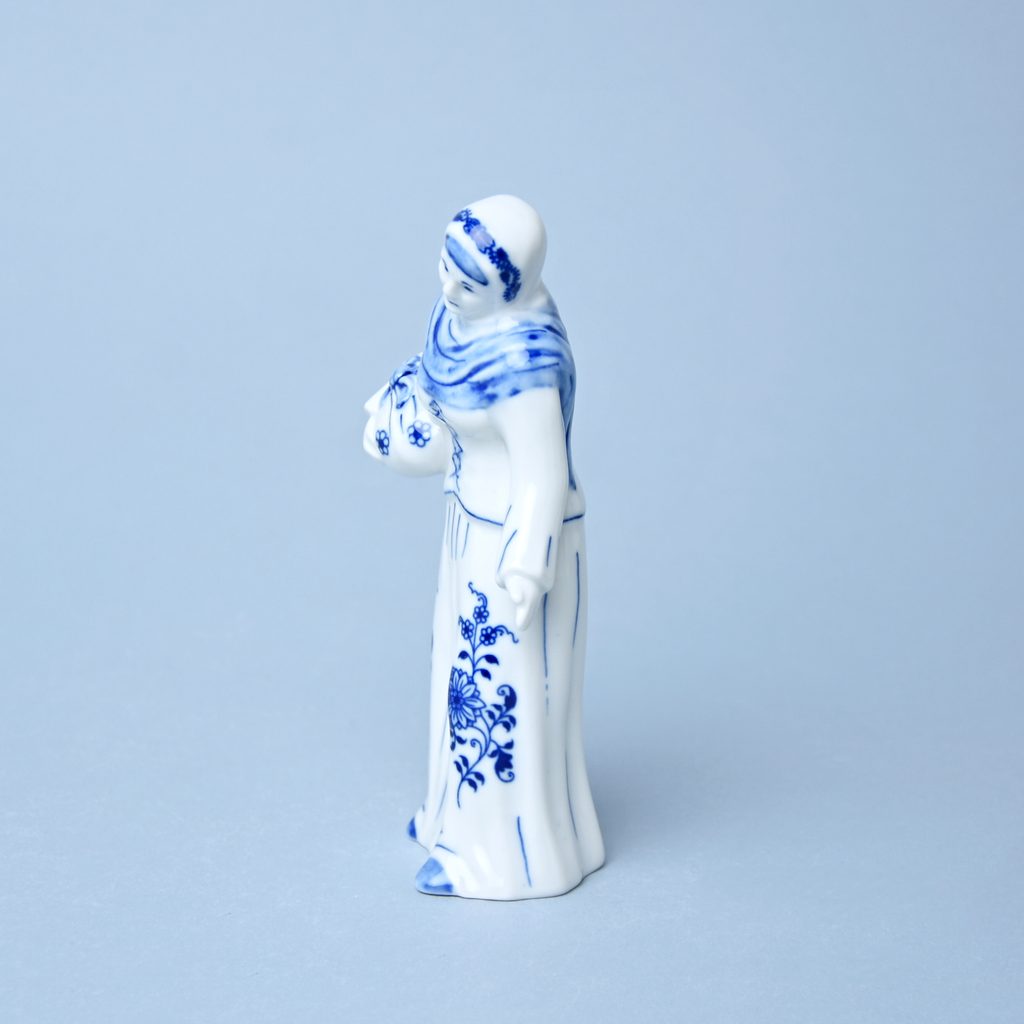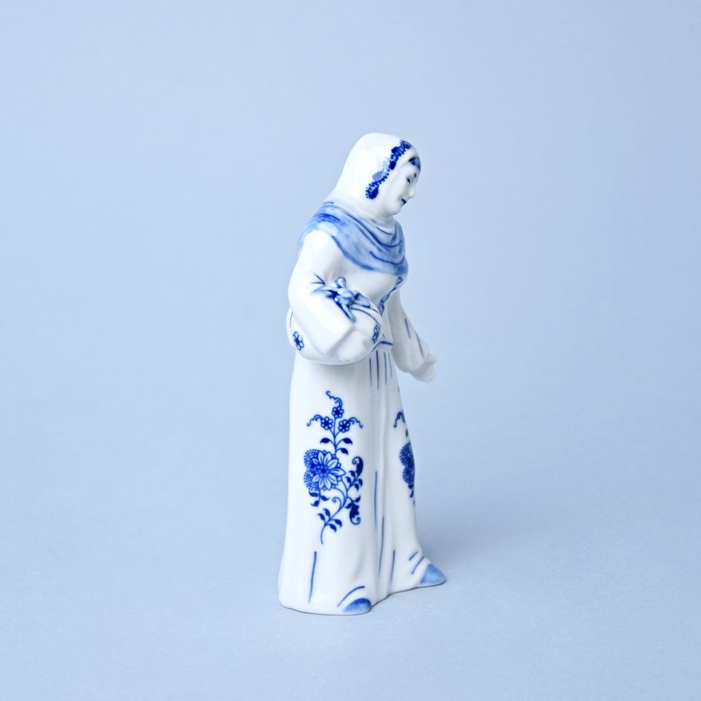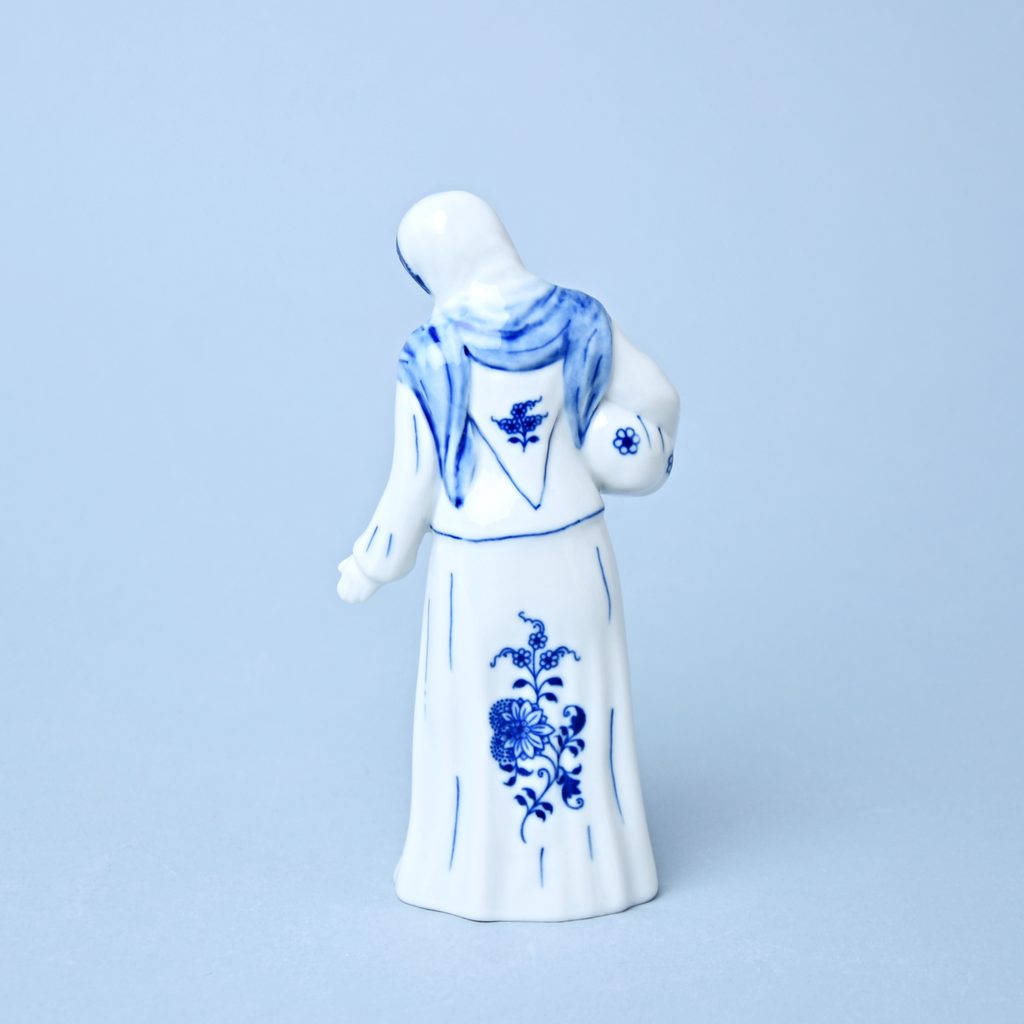 Porcelánová figurka do Vánočního betlému. Stařenka s uzlíčkem. originální Cibulákový dekor z Dubí, Český porcelán a.s.