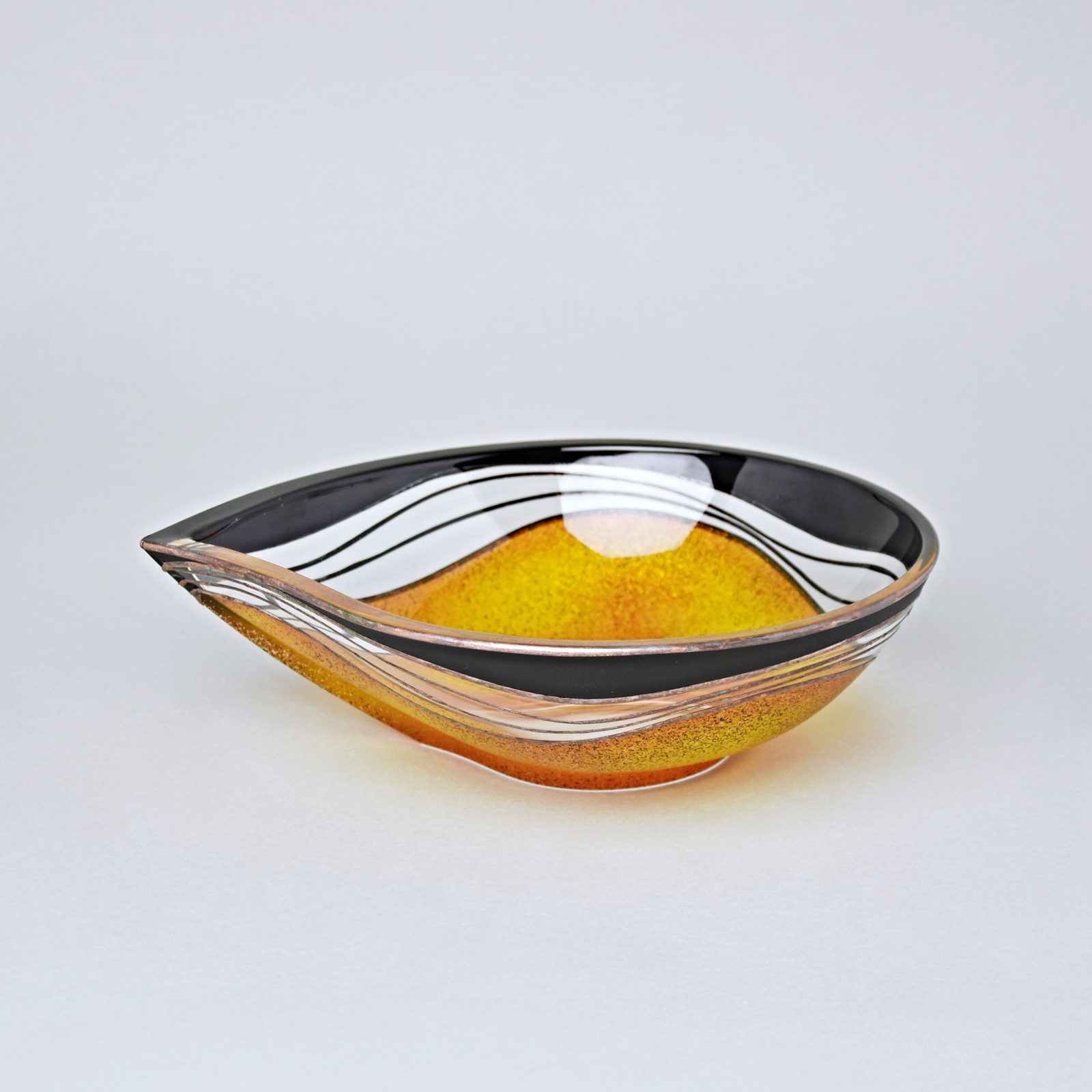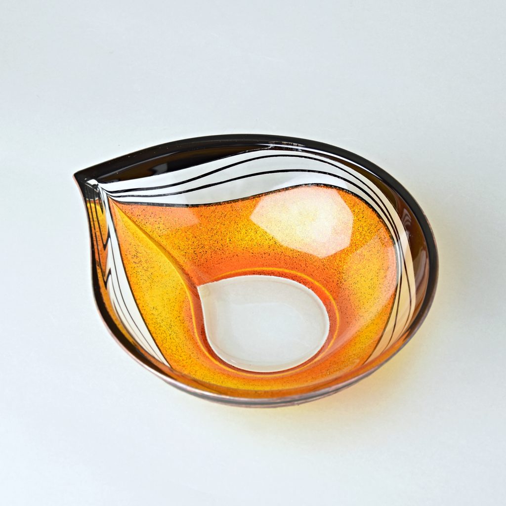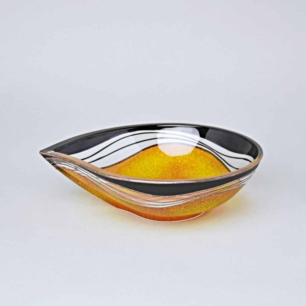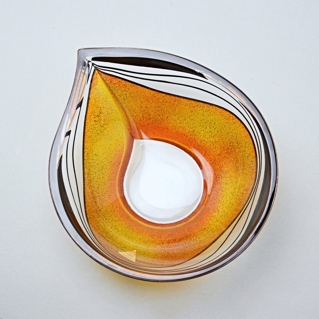 Studio Miracle: Mísa Slza oranžovo-žlutá, 25,5 x 21,5 cm, ruční dekorace Vlasta Voborníková