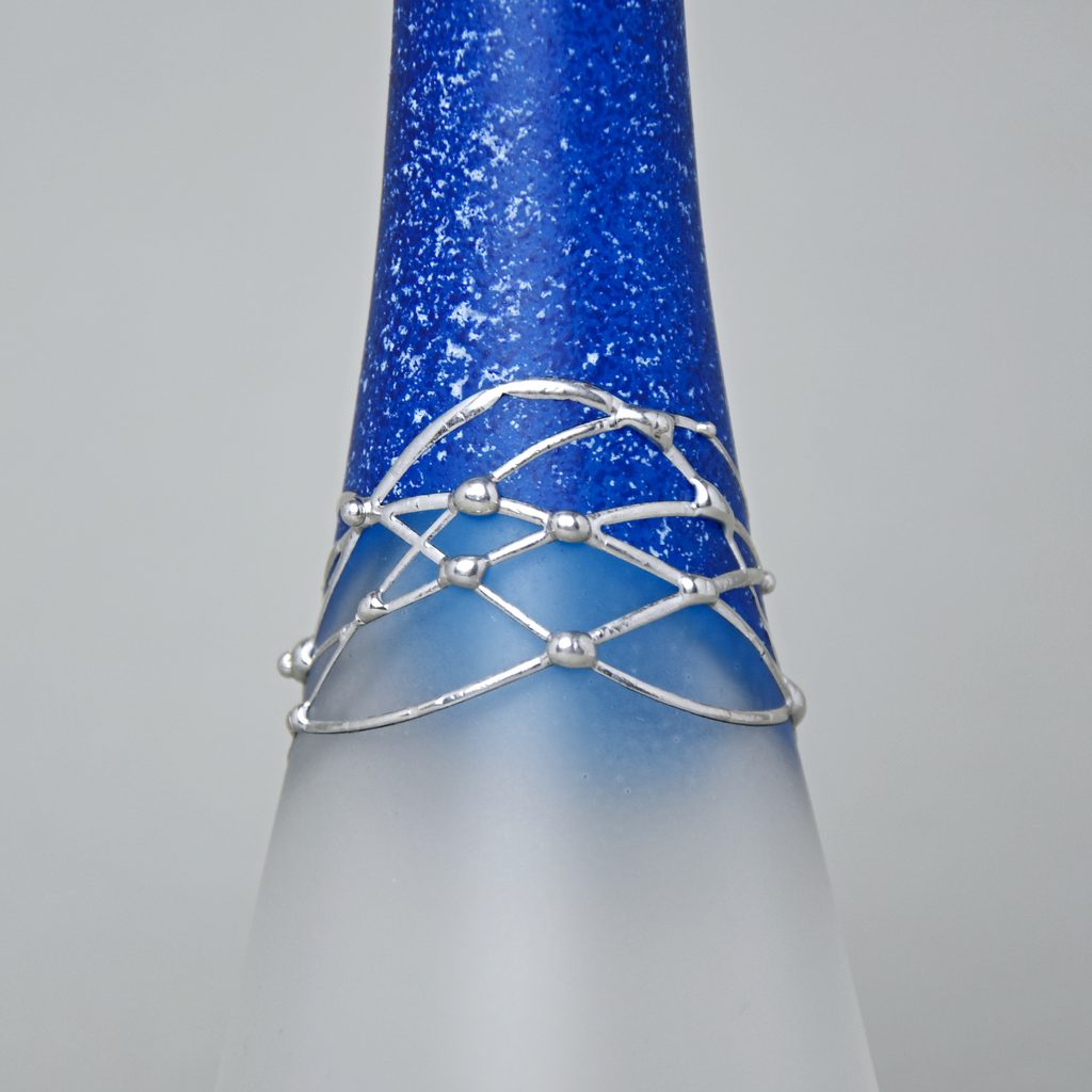 Studio Miracle: Váza modrá + cín, 25 cm, ruční dekorace Vlasta Voborníková