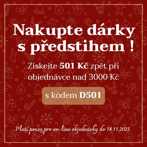 Do 18/11/2025 pro on-line objednávky: Sleva 501 Kč k objednávce nad 3000 Kč. Použijte kód: D501