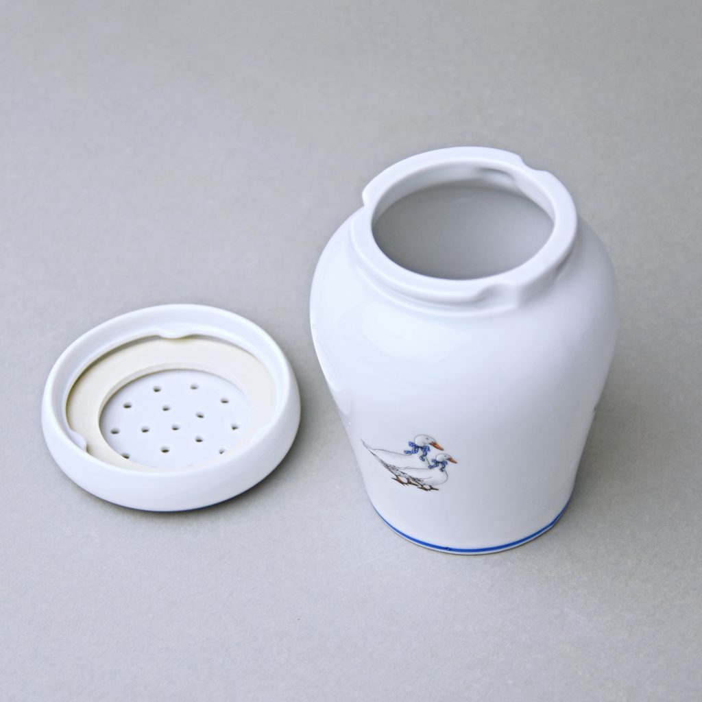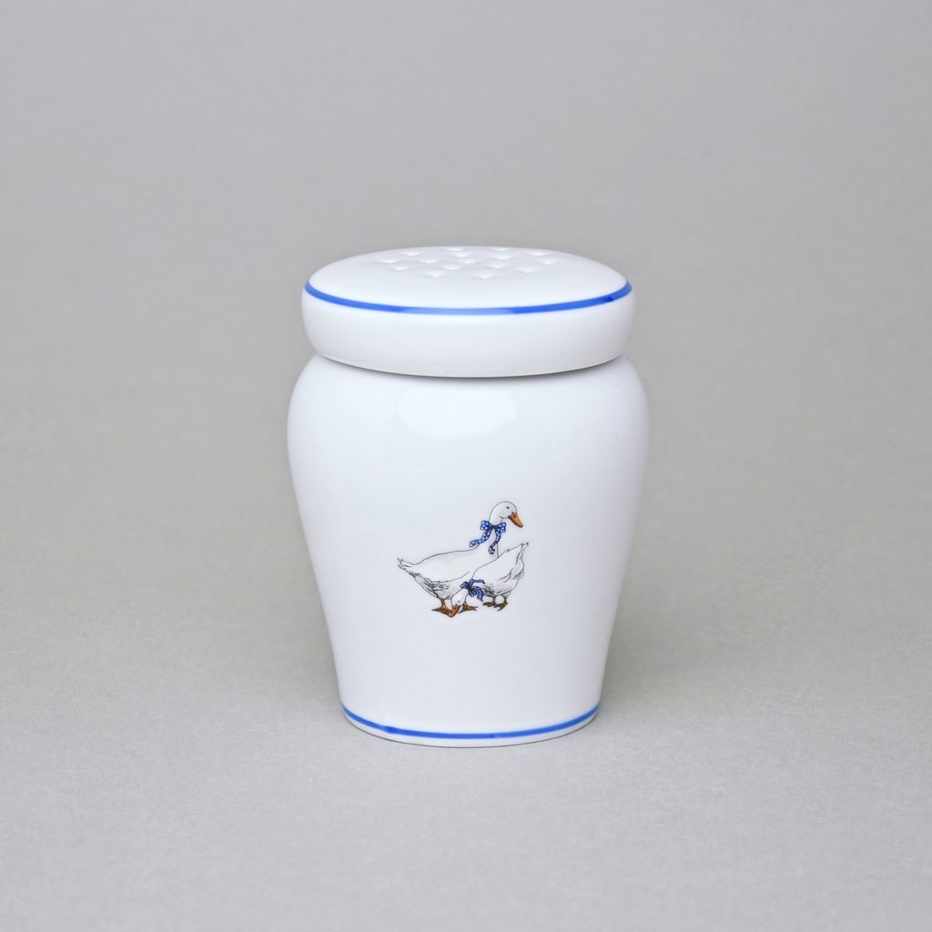 Cukřenka / sypátko se šroubovacím víčkem a gumovým těsněním na moučkový cukr. Dekor husy, Český porcelán a.s.