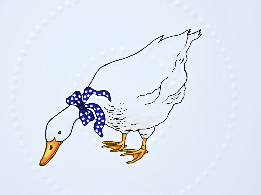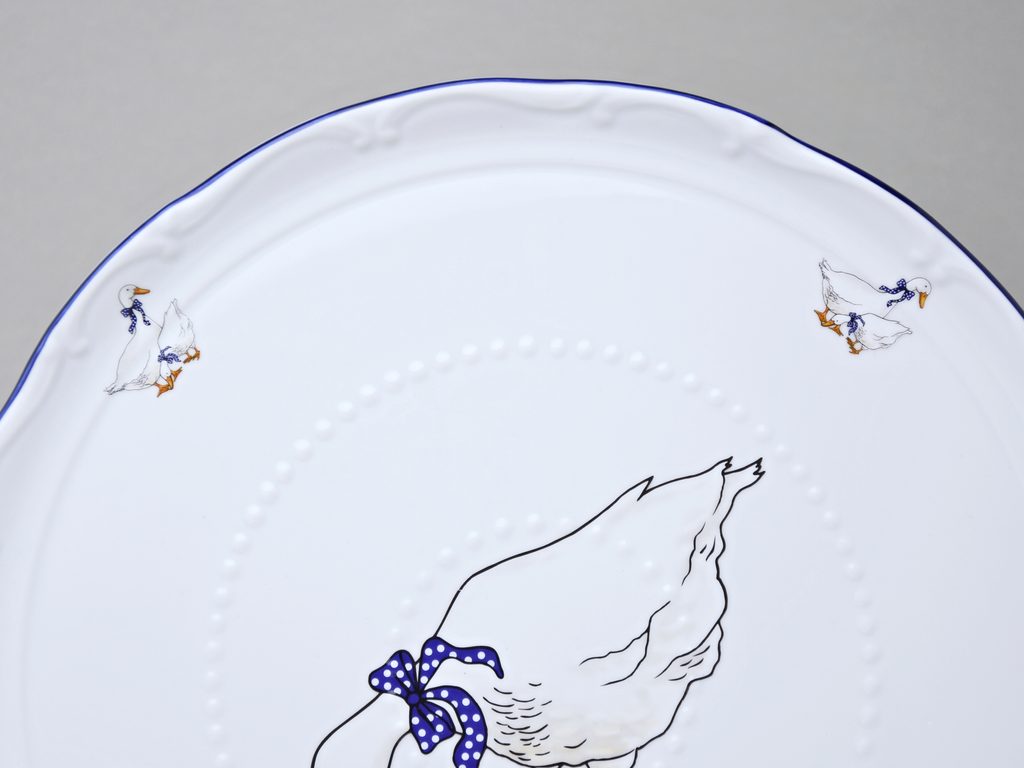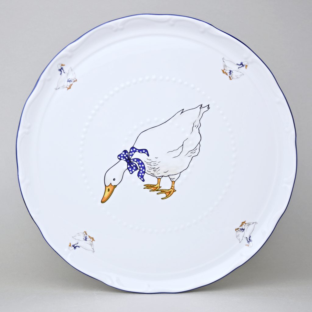 950 g, dortový plochý talíř s protiskluzovými výstupky (původní tvar ze Staré Role) s oblíbeným dekorem husy