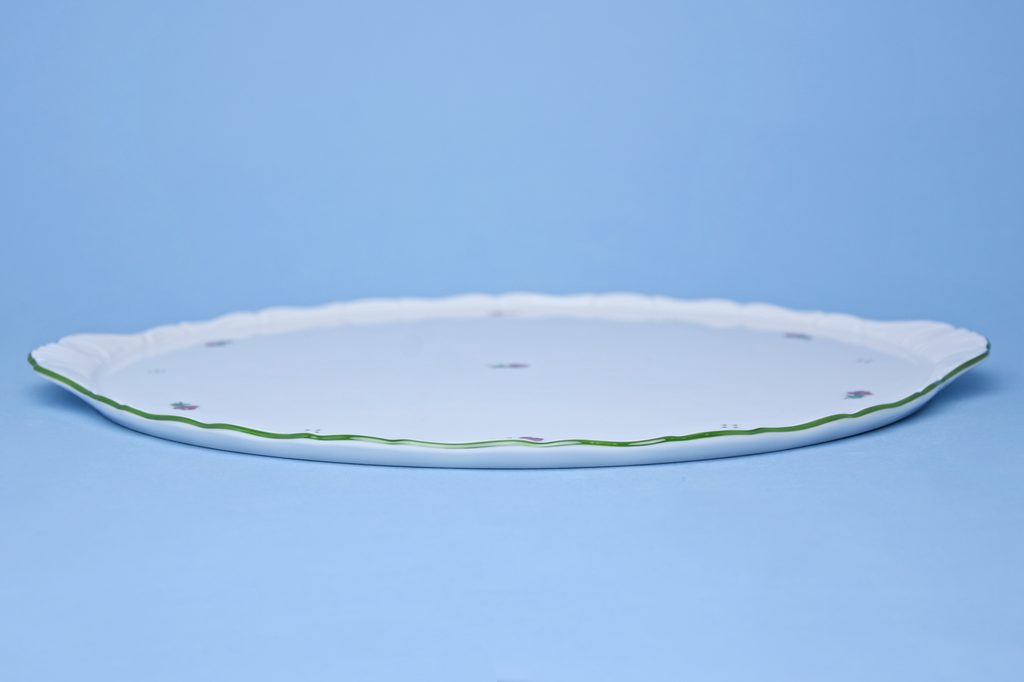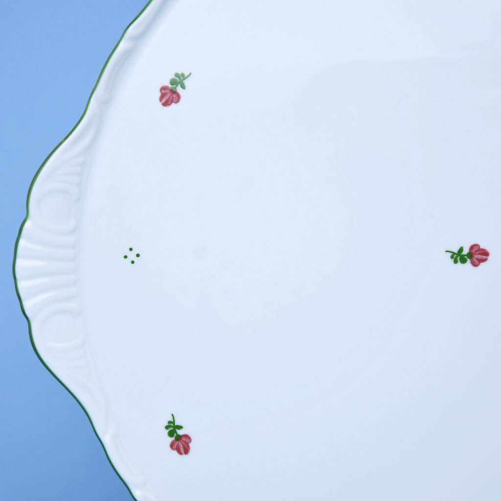 Podnosy, ovály, mísy ploché, koláčové a dortové talíře BENEDIKT a VERONA červené kvítky + zelená
