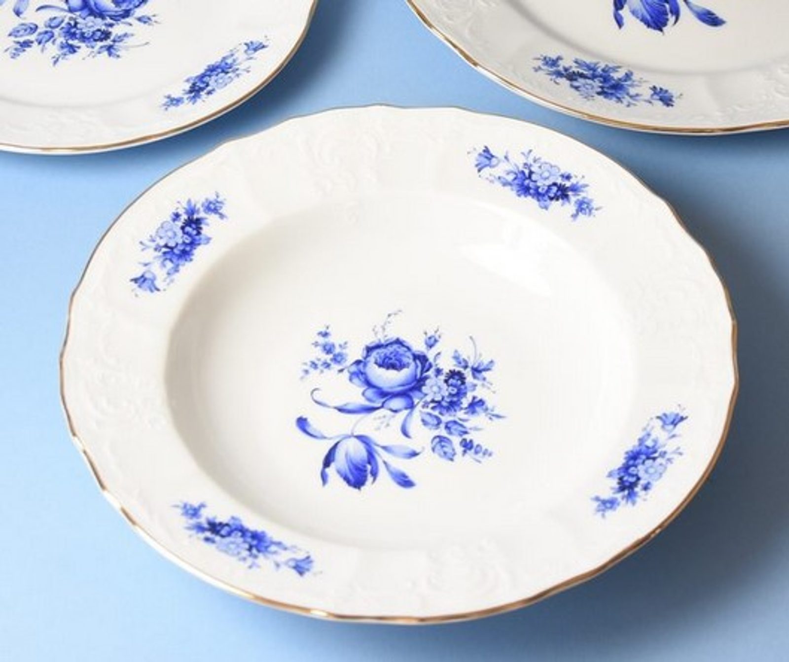 Talíř hluboký 23 cm, Thun 1794, karlovarský porcelán, BERNADOTTE modrá růže