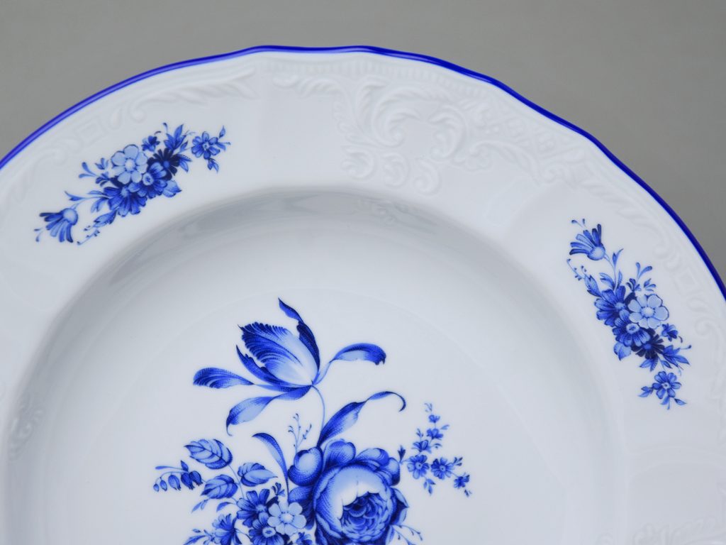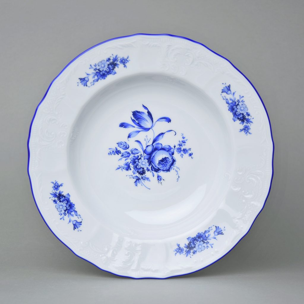 Talíř hluboký 23 cm, Thun 1794, karlovarský porcelán, BERNADOTTE modrá růže, MODRÁ linka