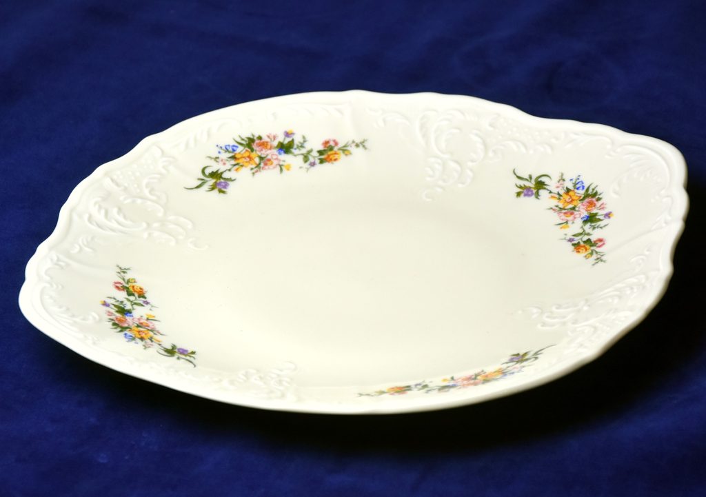 Podnosy, ovály, mísy ploché, koláčové a dortové talíře BERNADOTTE slonová kost + kytičky