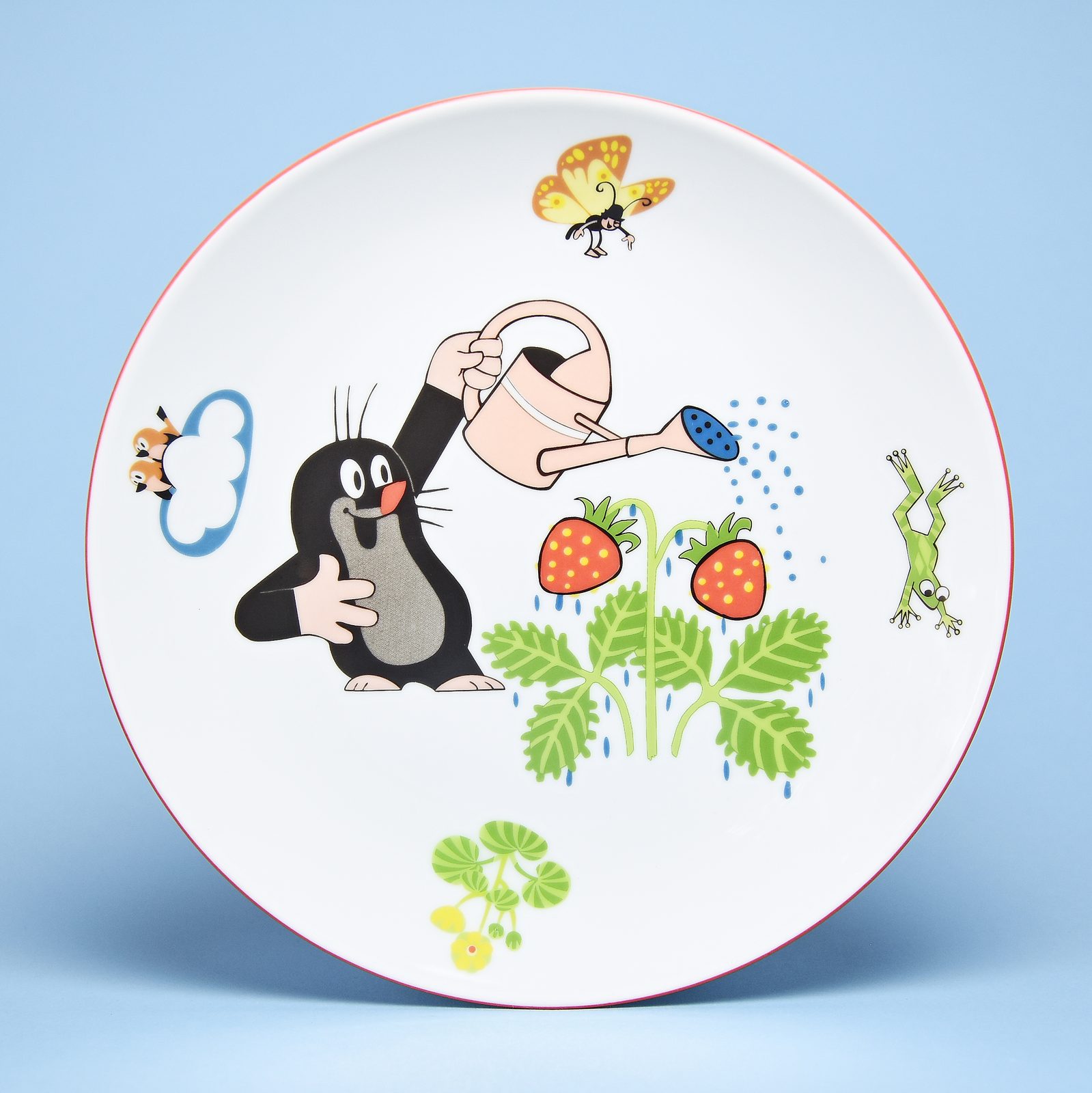 Talíř mělký 21 cm s Krtečkem zahradníkem s jahodou a konví, Thun 1794, karlovarský porcelán