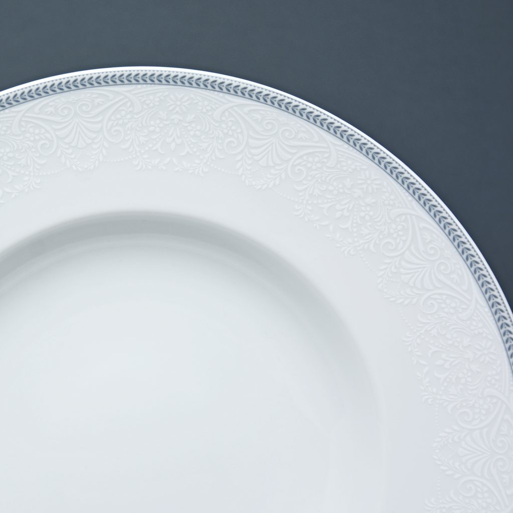 nádherný velký hluboký talíř na těstoviny či salát s nejúspěšnějším dekorem porcelánky THUN, Opál 80136 šedá krajka