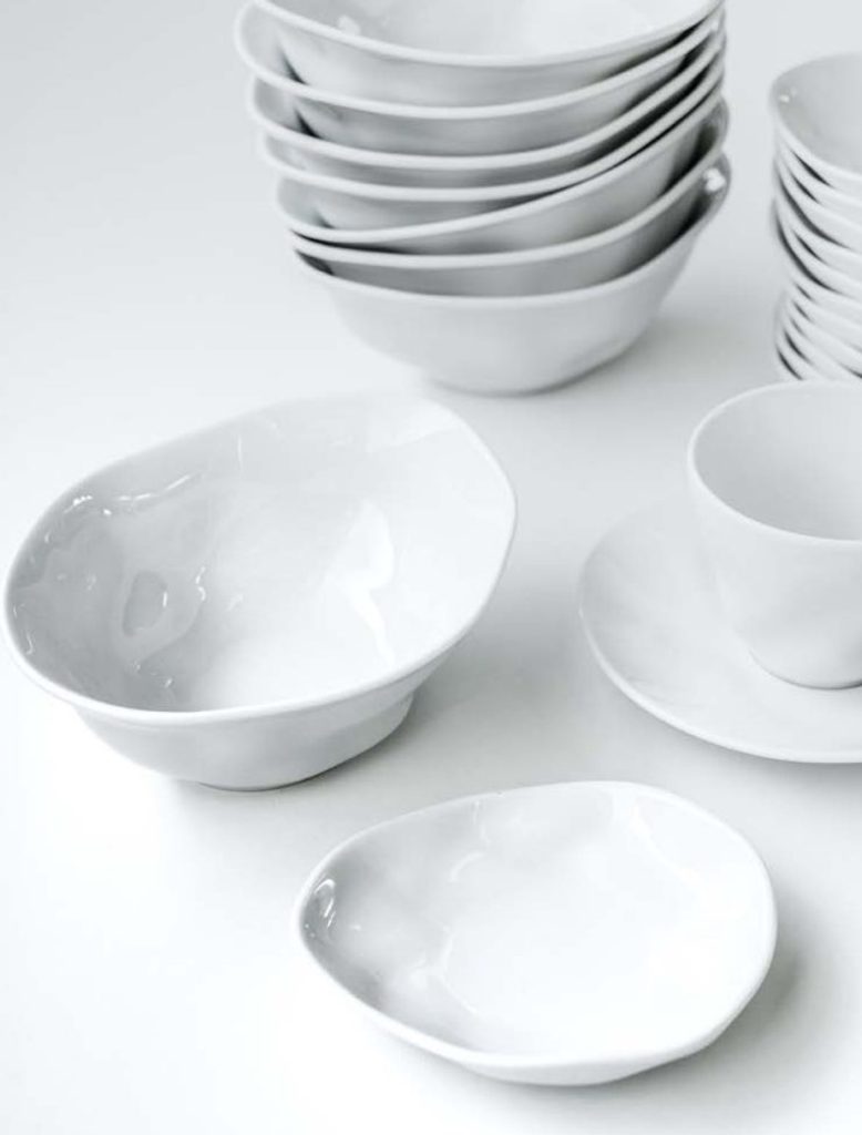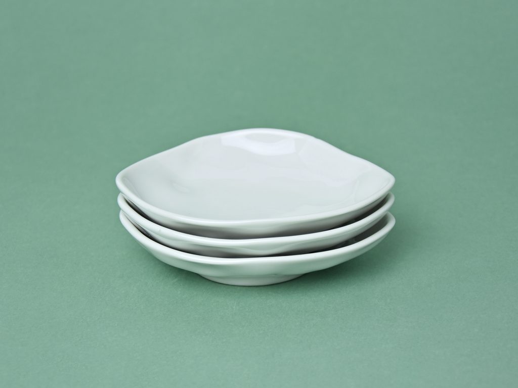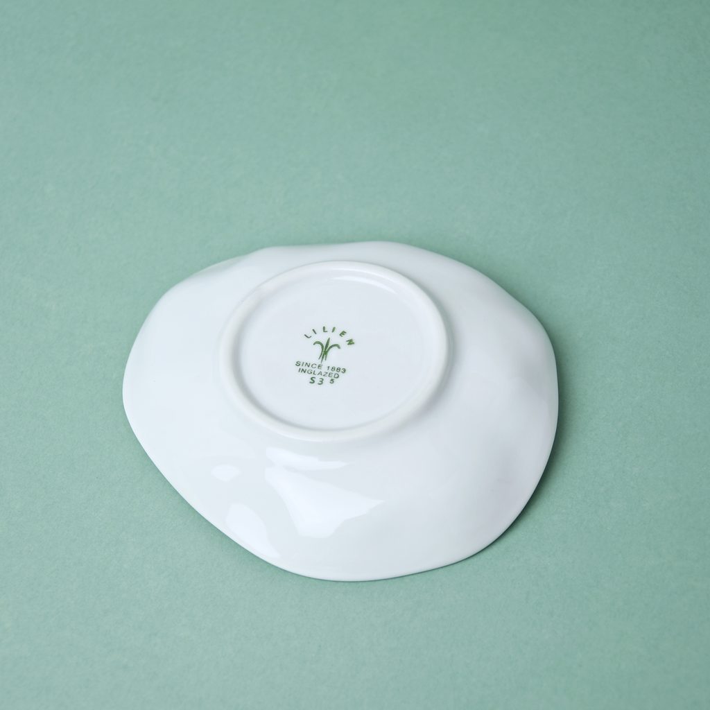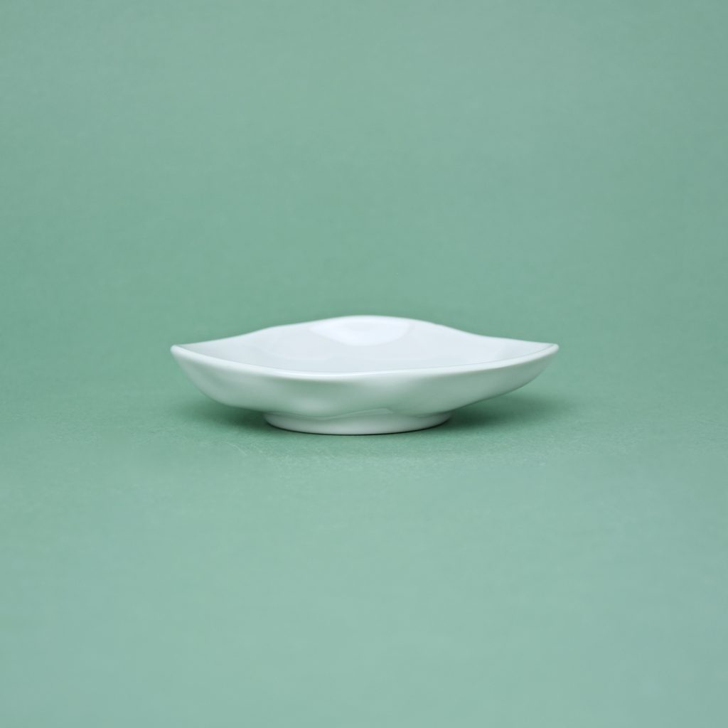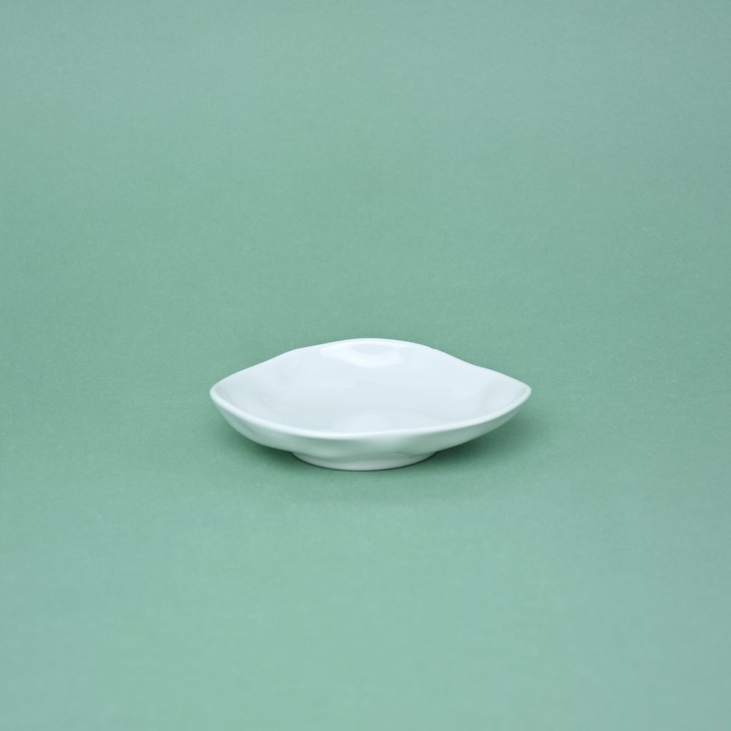Designový porcelánový talířek / mistička. Atypický nepravidelný "pomačkaný" tvar kolekce FLAMENCO. Tvar mají sice tyto talířky nepravidelný, ale všechny stejný, tudíž není problém je štosovat - krásně do sebe sedí viz. foto. Nedekorováno - čistě bílé. Vyrobeno v České republice v porcelánce G. Benedikt 1882, pod jednou z jejich původních značek Lilien Austria.