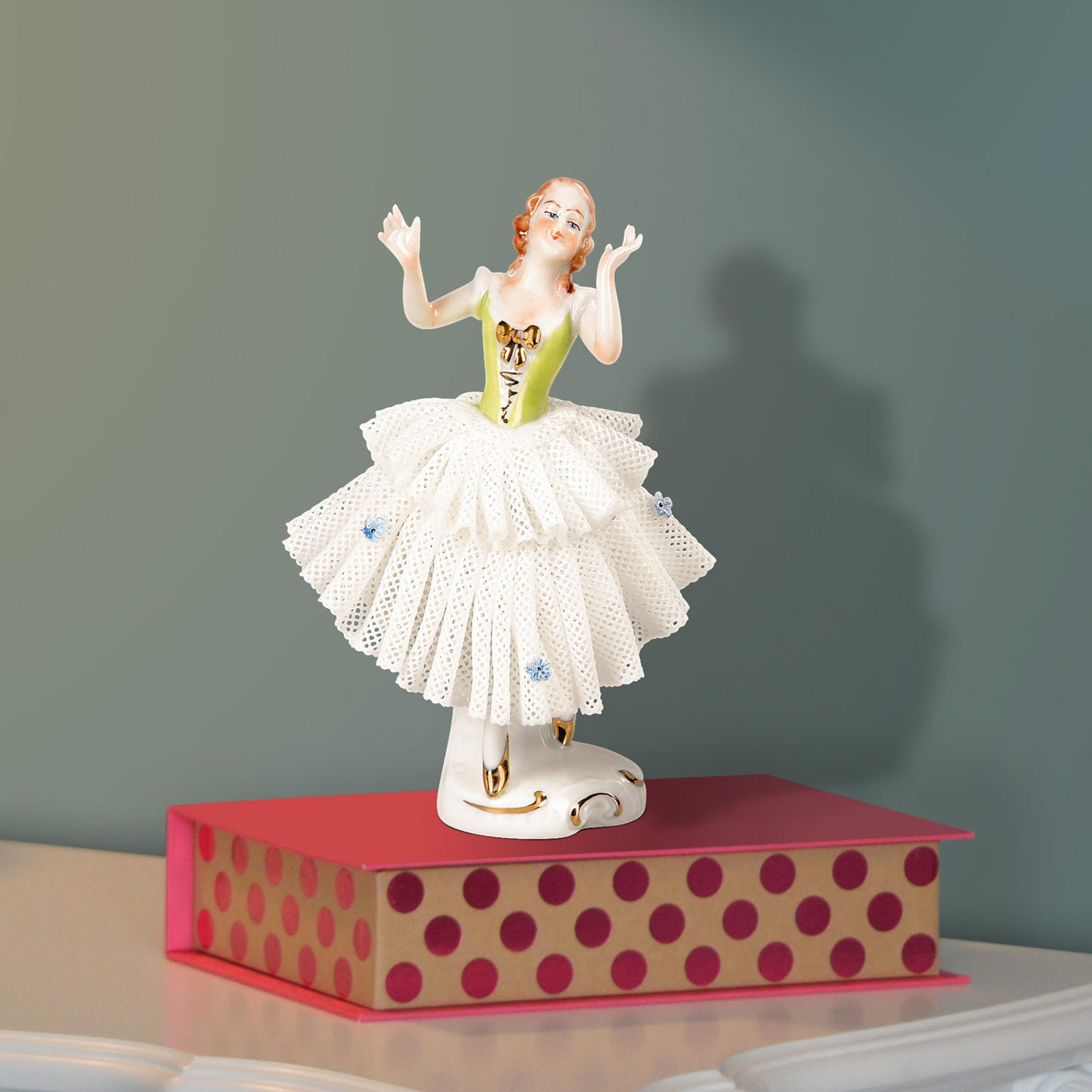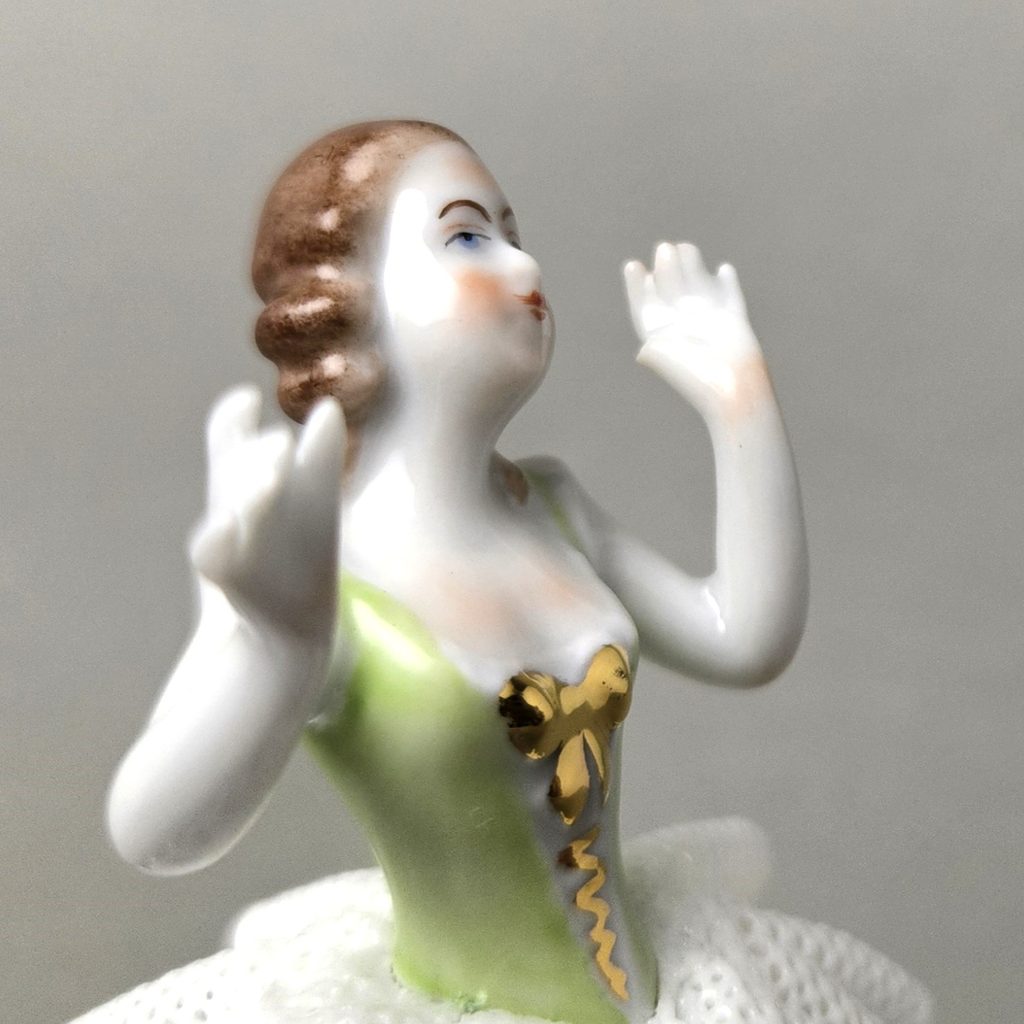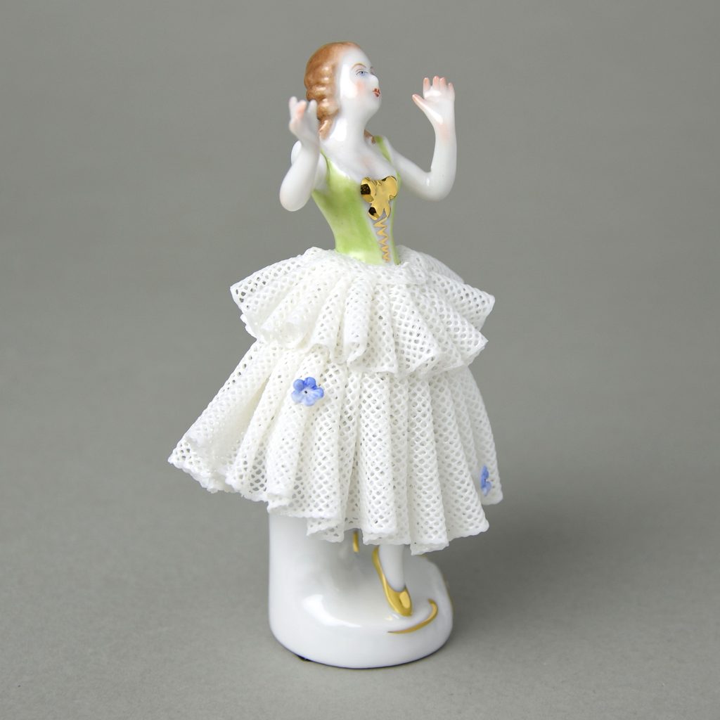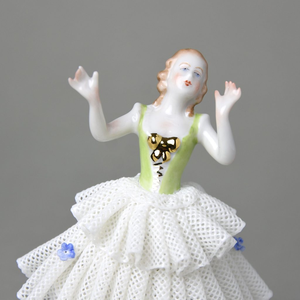 Tanečnice s krajkou (zelená - poškozená), Kurt Steiner, 12 x 8 x 6 cm, Porcelánové figurky Unterwissbacher