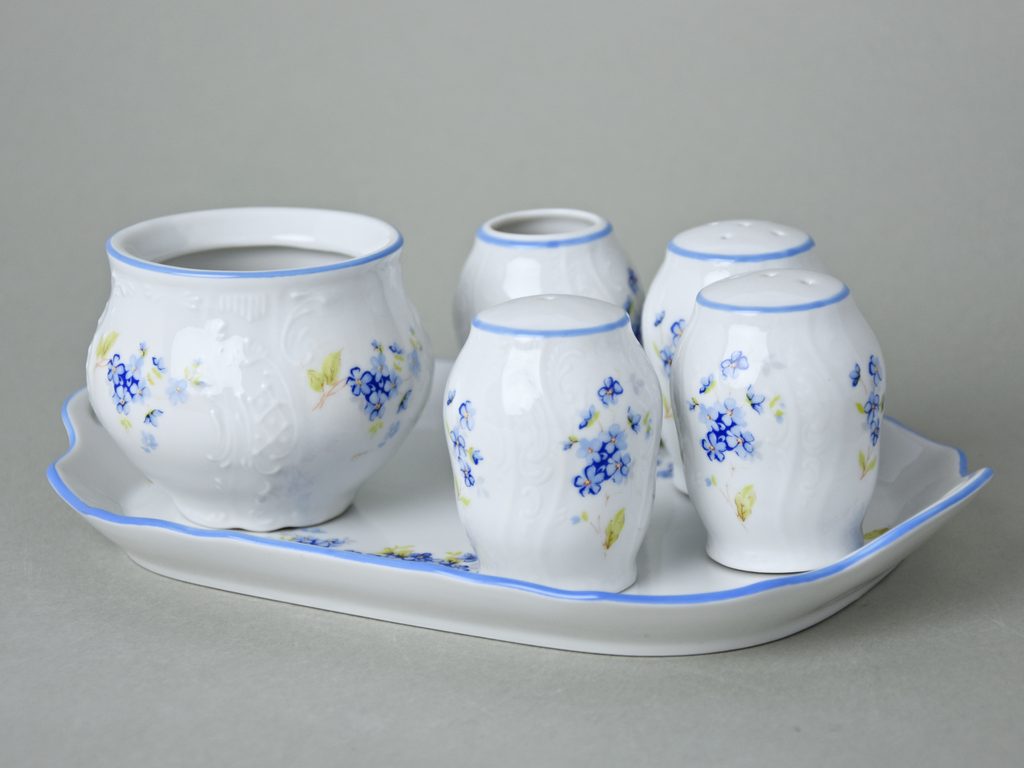 Dochucovací sada 6 dílná, Thun 1794, karlovarský porcelán, BERNADOTTE pomněnka