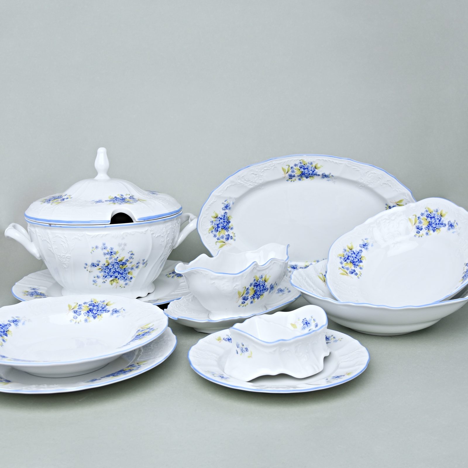 Jídelní souprava pro 6 osob, Thun 1794, karlovarský porcelán, BERNADOTTE pomněnka
