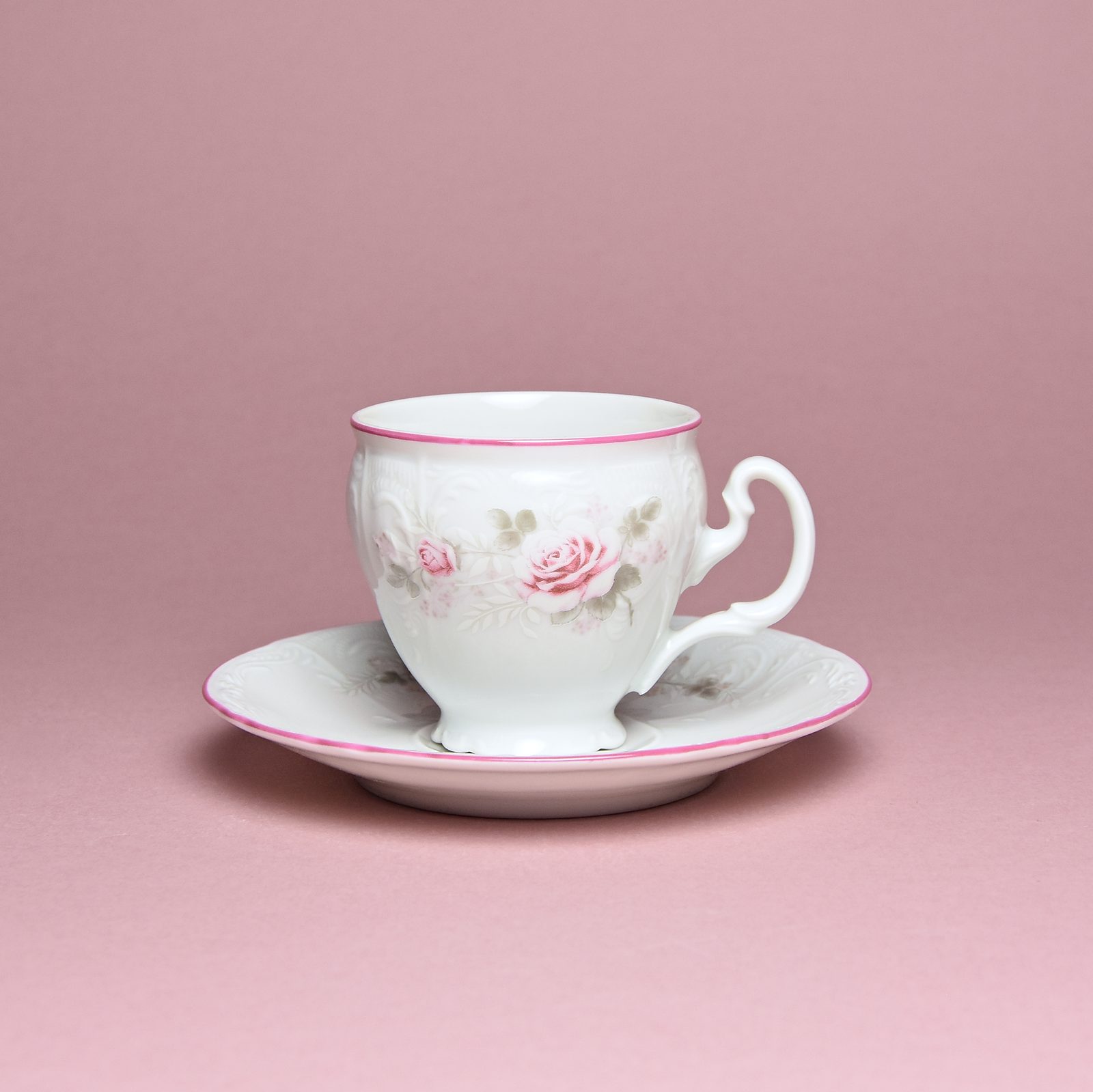 Růžová linka: Šálek a podšálek kávový 150 ml / 14 cm, Thun 1794, karlovarský porcelán, BERNADOTTE růžičky