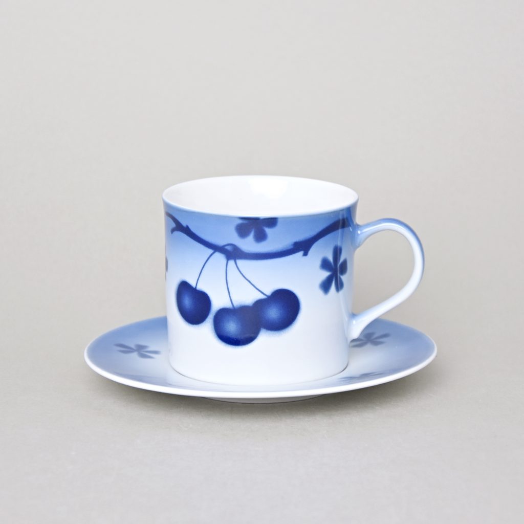 Šálek a podšálek 200 ml +15 cm, tvar Cairo, Blue Cherry.