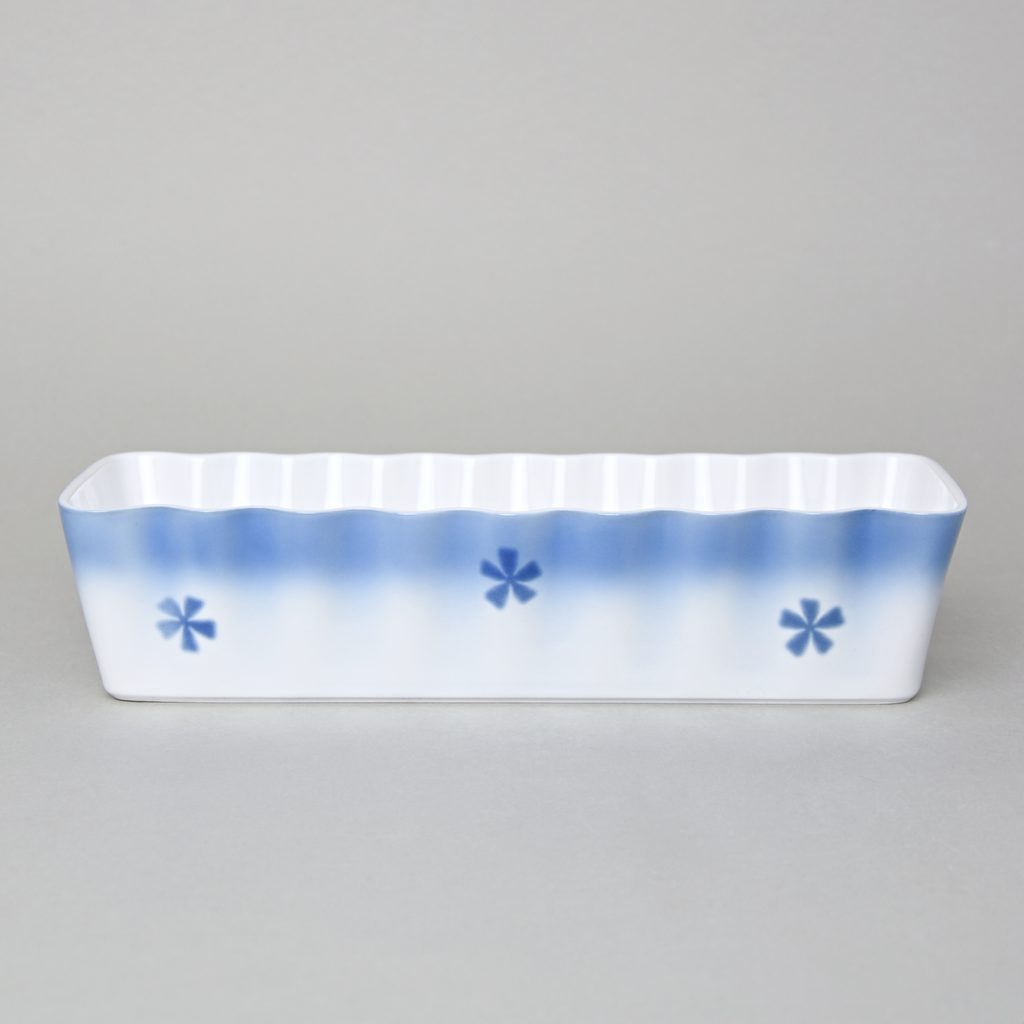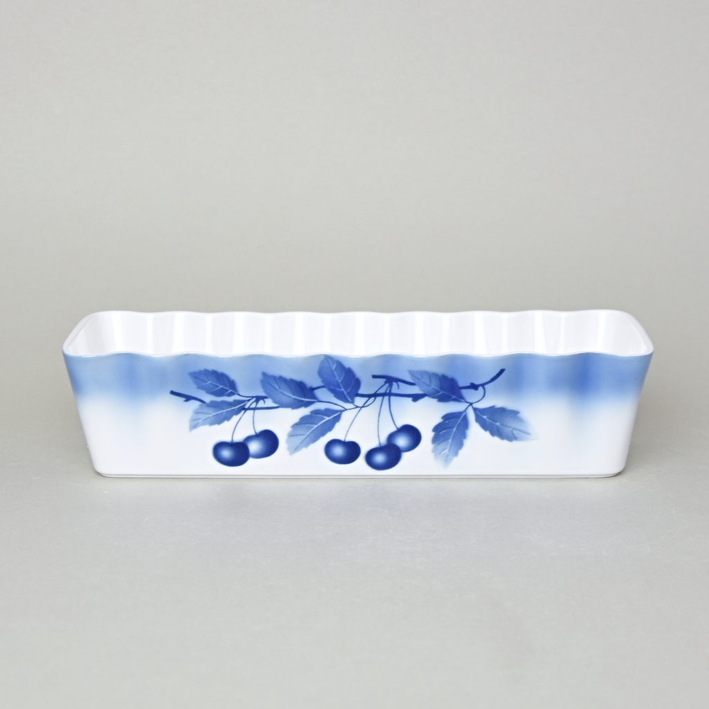 zapékací mísa s dekorem modrých třešní ve tvaru "srnčího hřbetu"