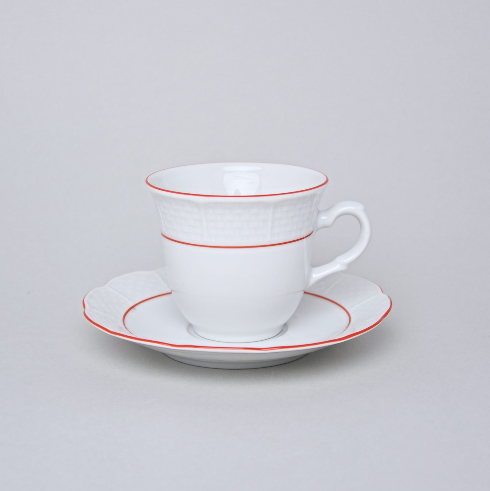 NATÁLIE 70477: Šálek vysoký 180 ml a podšálek 155 mm, Thun 1794, karlovarský porcelán, červená linka