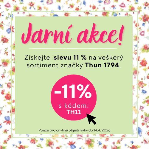 Pá 3/4 otevř. 9-14, so 4/4 otevř. 9-14, velik. neděle a pondělí zavřeno. Použijte kód TH11 a získejte SLEVU 11% na výrobky porcelánky THUN. Platí do 14.dubna pro www objednávky.