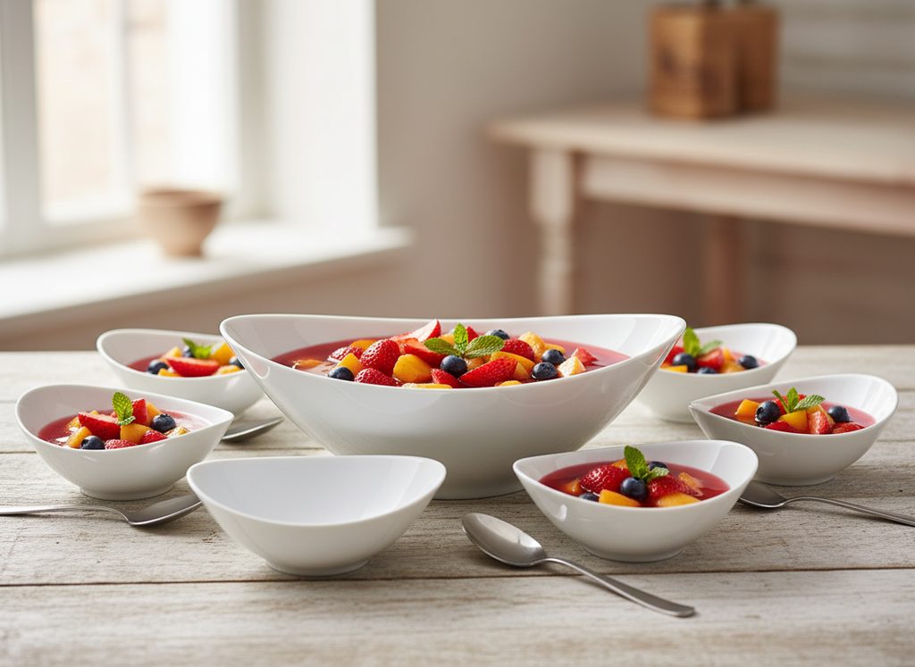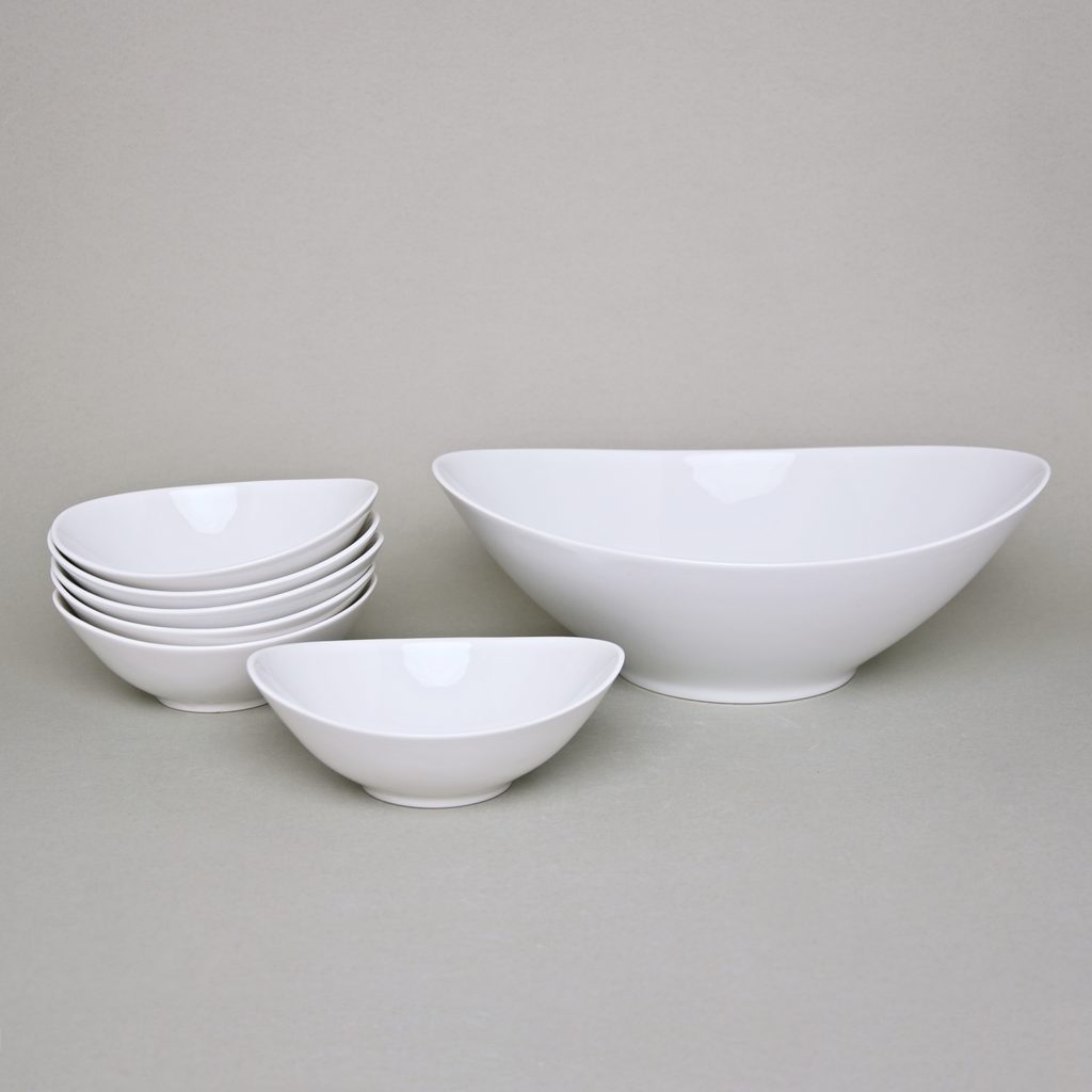 6x miska 14 cm + mísa 27 cm, oválný designový tvar Loos z THUNské porcelánky