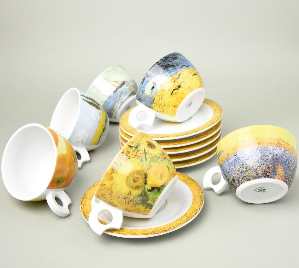 bytelné (těžší) šálky a podšálky na čaj / cappuccino s motivy maleb V. van Gogha