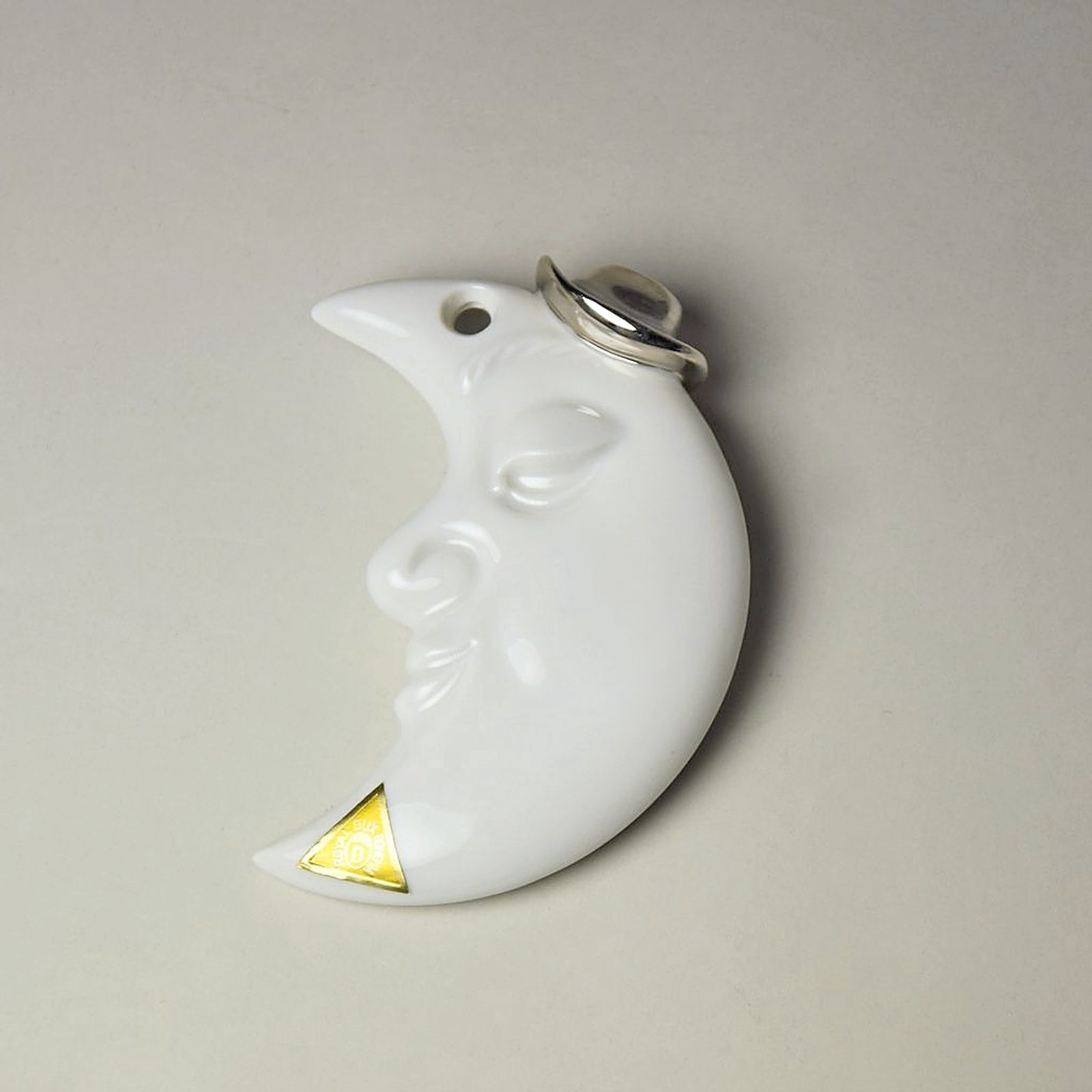 Vánoční ozdoba - měsíc 10 cm, bílá + platina, porcelánové figurky Duchcov