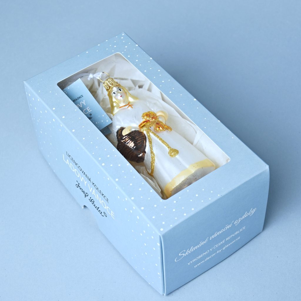 Skleněná vánoční ozdoba anděla je novinkou v naší licencované kolekci Ladovy Vánoce. Mikuláš, čert a anděl jsou klasickou trojicí z knih a ilustrací Josefa Lady.