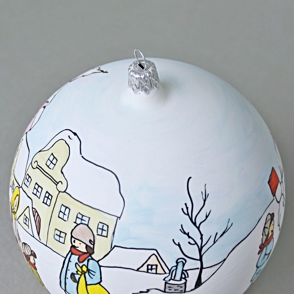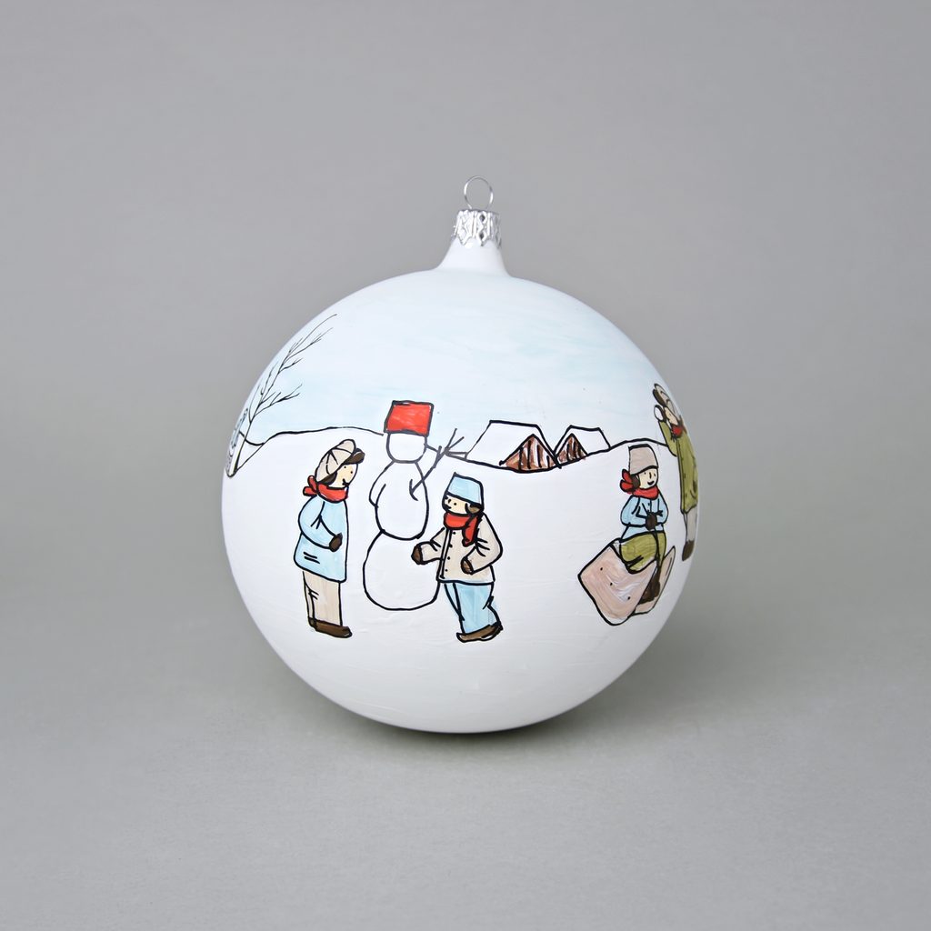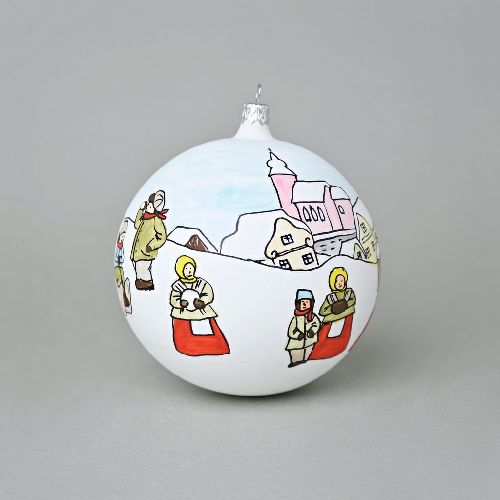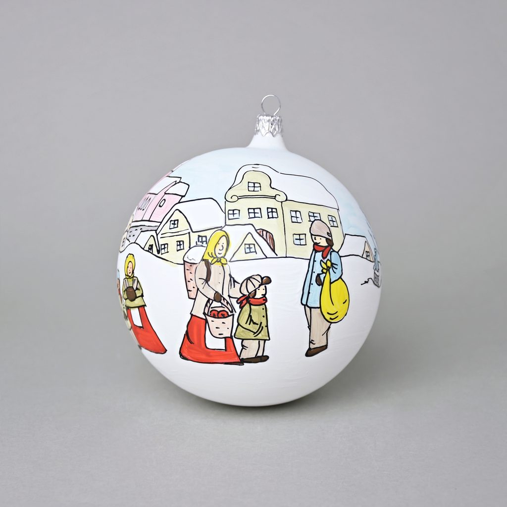 Vánoční skleněná koule 12 cm na stromeček "Česká zima 1918", dekor č. 1, ručně malováno