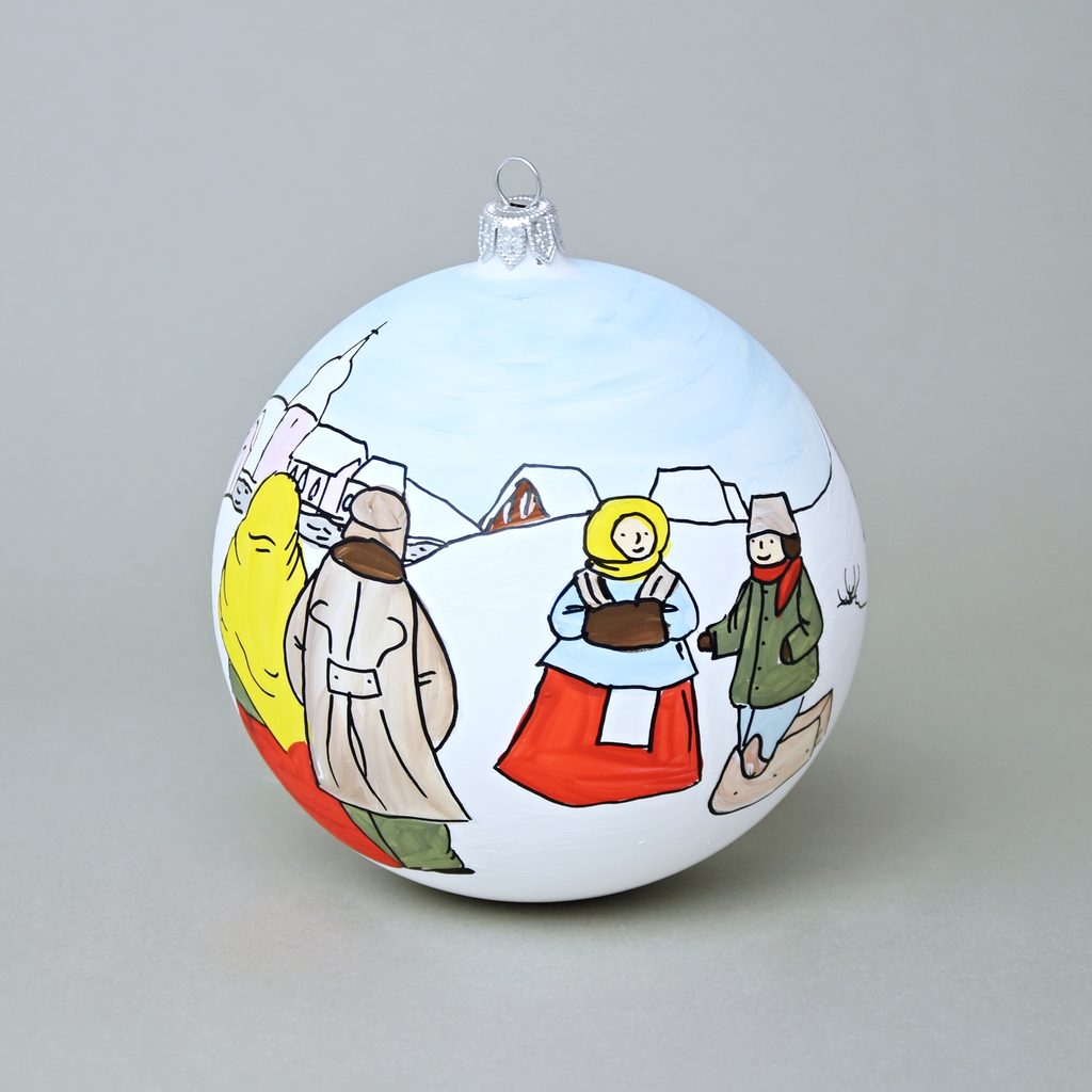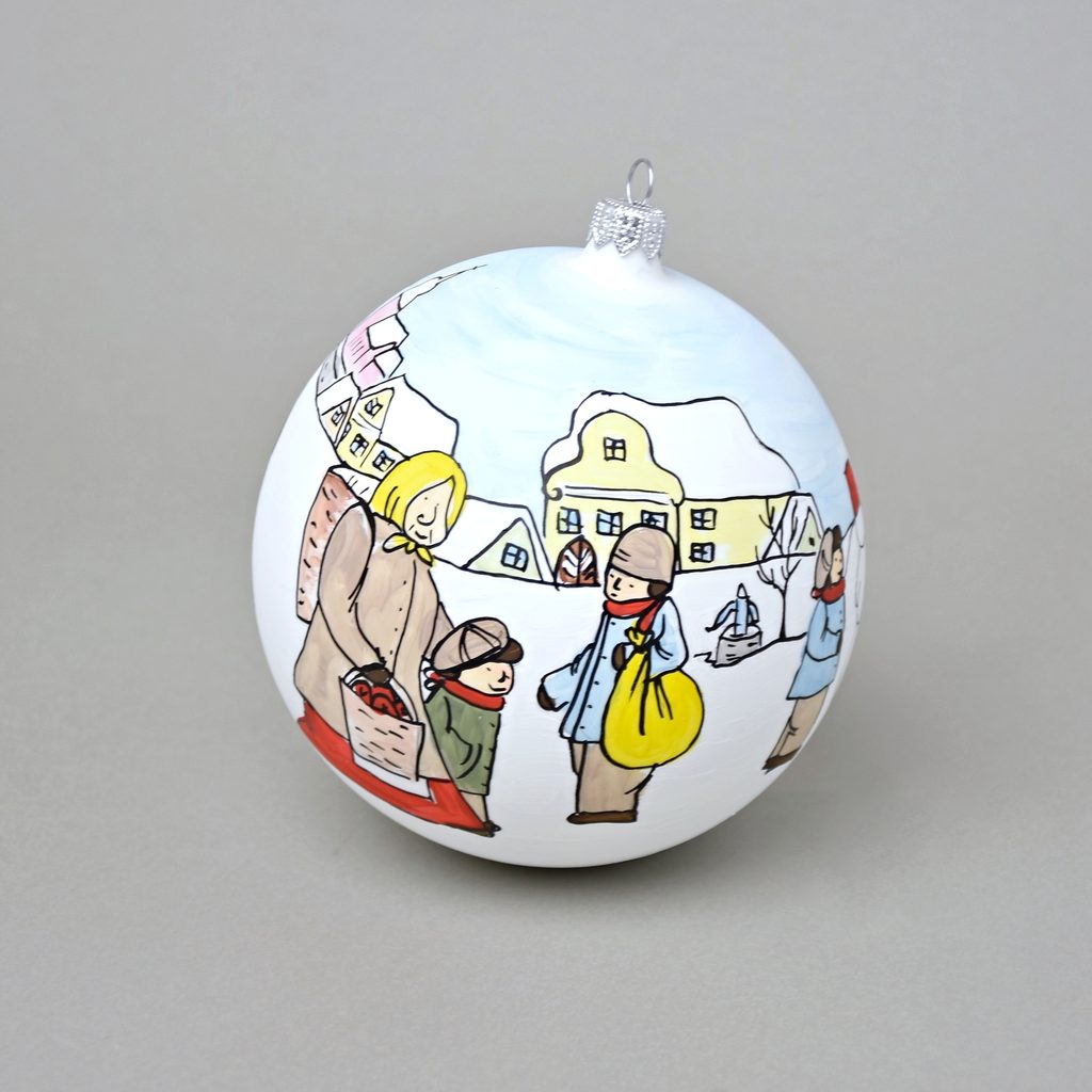 Ručně foukaná a malovaná vánoční ozdoba na stromeček - velká (12 cm) s certifikátem pravosti. Exkluzivní limitovaná číslovaná edice - každá koule má na spodu své unikátní číslo. 1 až 10. Jedná se o dva různé dekory a od každého je vyrobeno pouze 10 kusů.