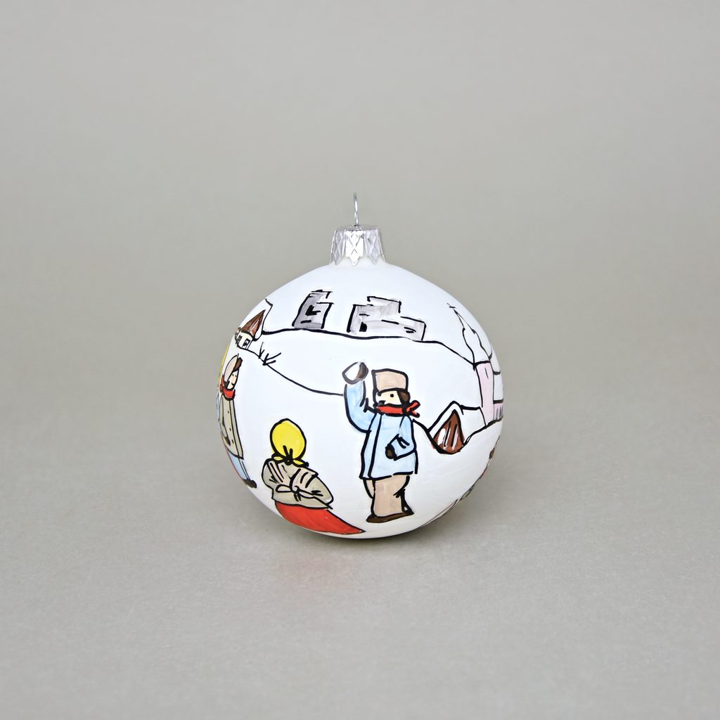 Vánoční skleněná koule na stromeček "Česká zima 1918", dekor č. 1, 7,5 cm, ručně malováno