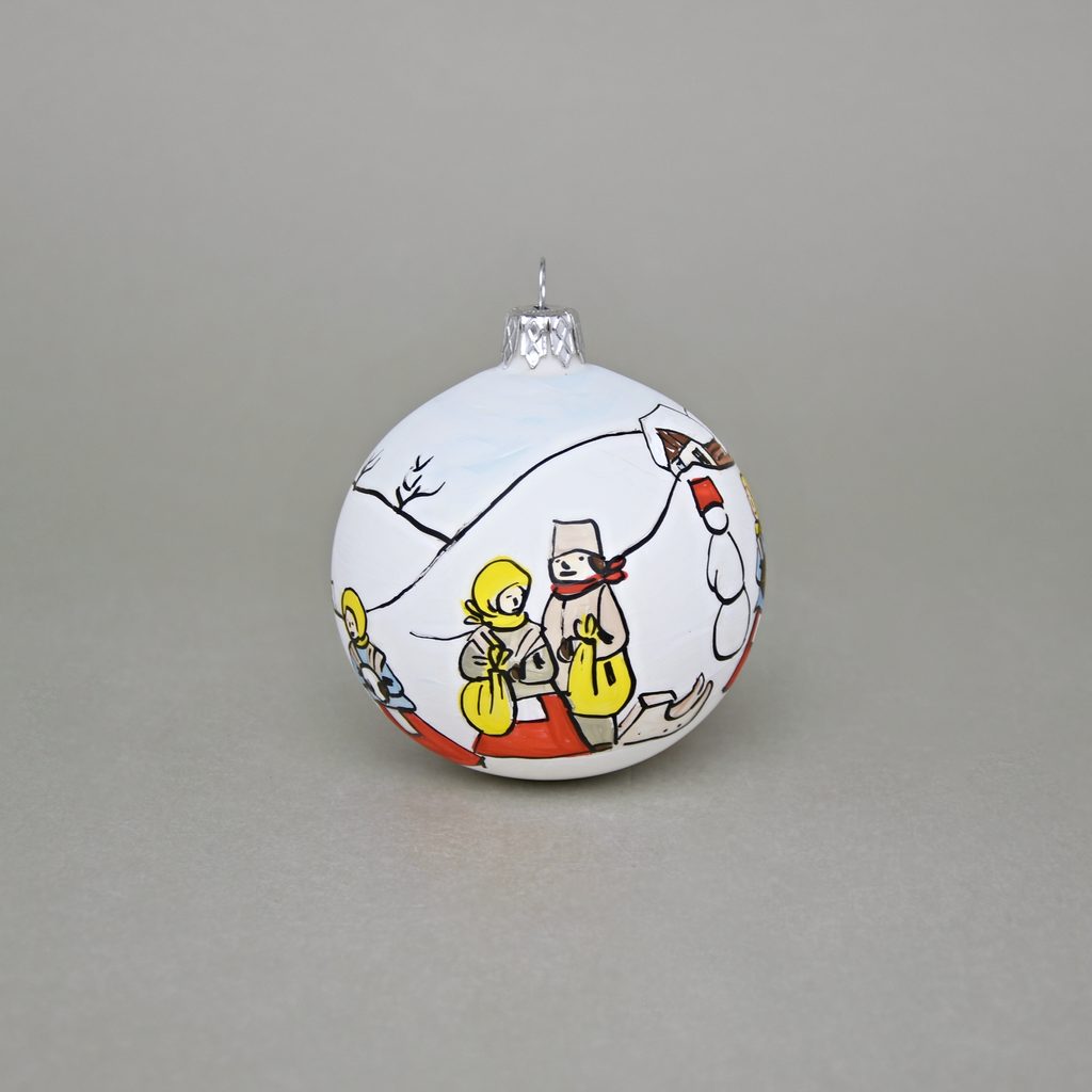 Ručně foukaná a malovaná vánoční ozdoba na stromeček. Dekor "Česká zima 1918". České sklo.