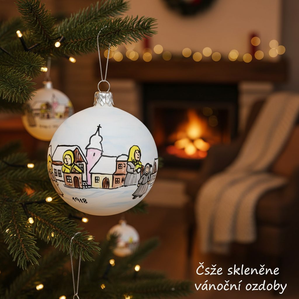 Vánoční skleněná koule na stromeček "Česká zima 1918", dekor č. 5, 7,5 cm, ručně malováno
