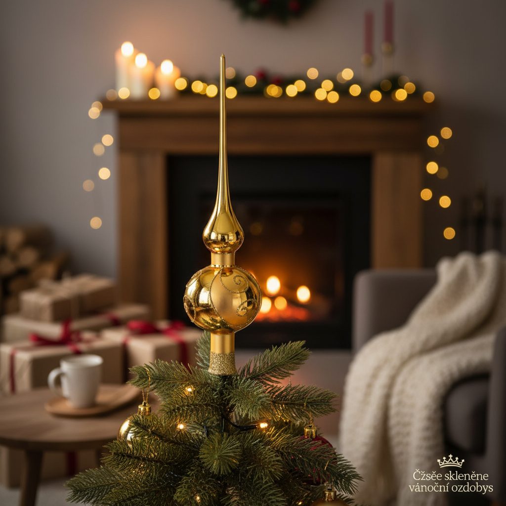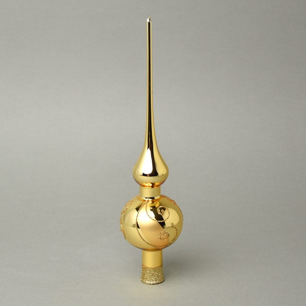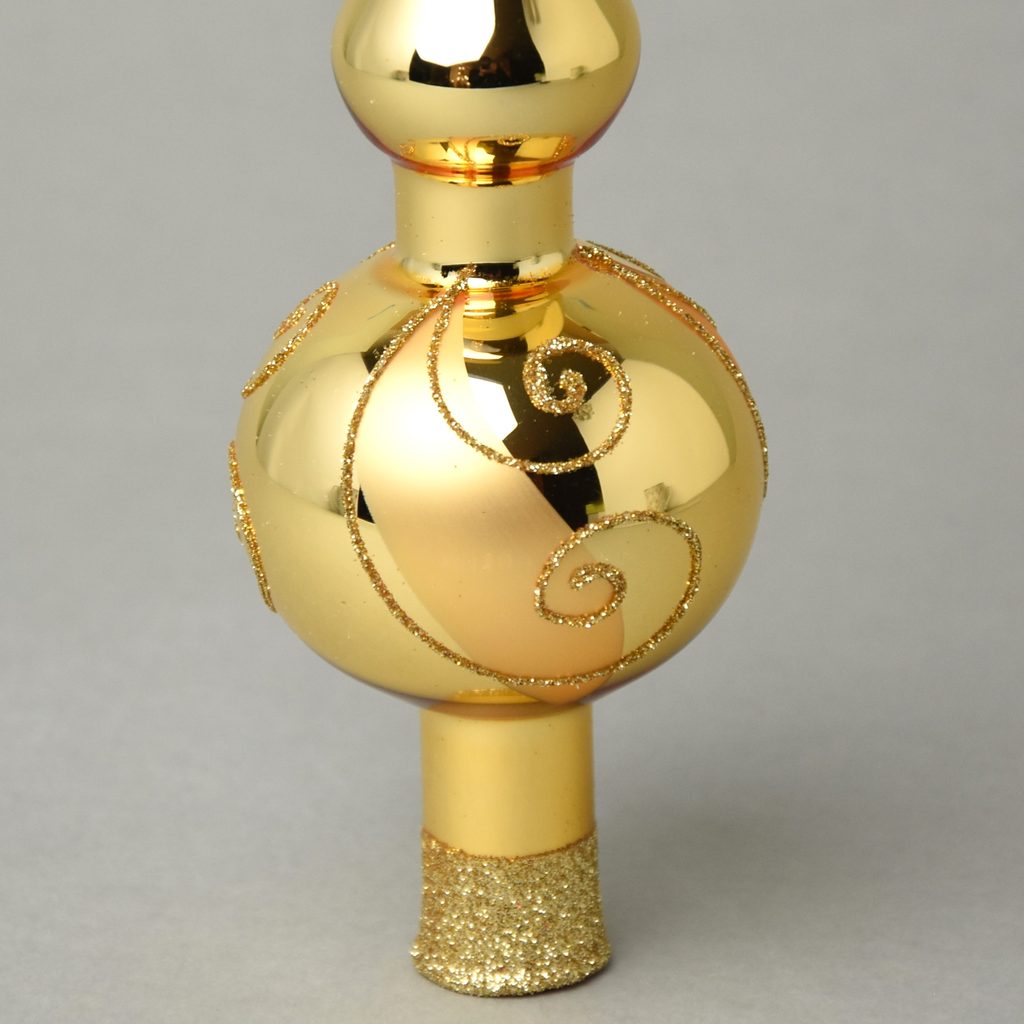 Vánoční skleněná ozdoba špička na stromeček 26 cm - ZLATÁ lesklá - šneci, česká ruční práce