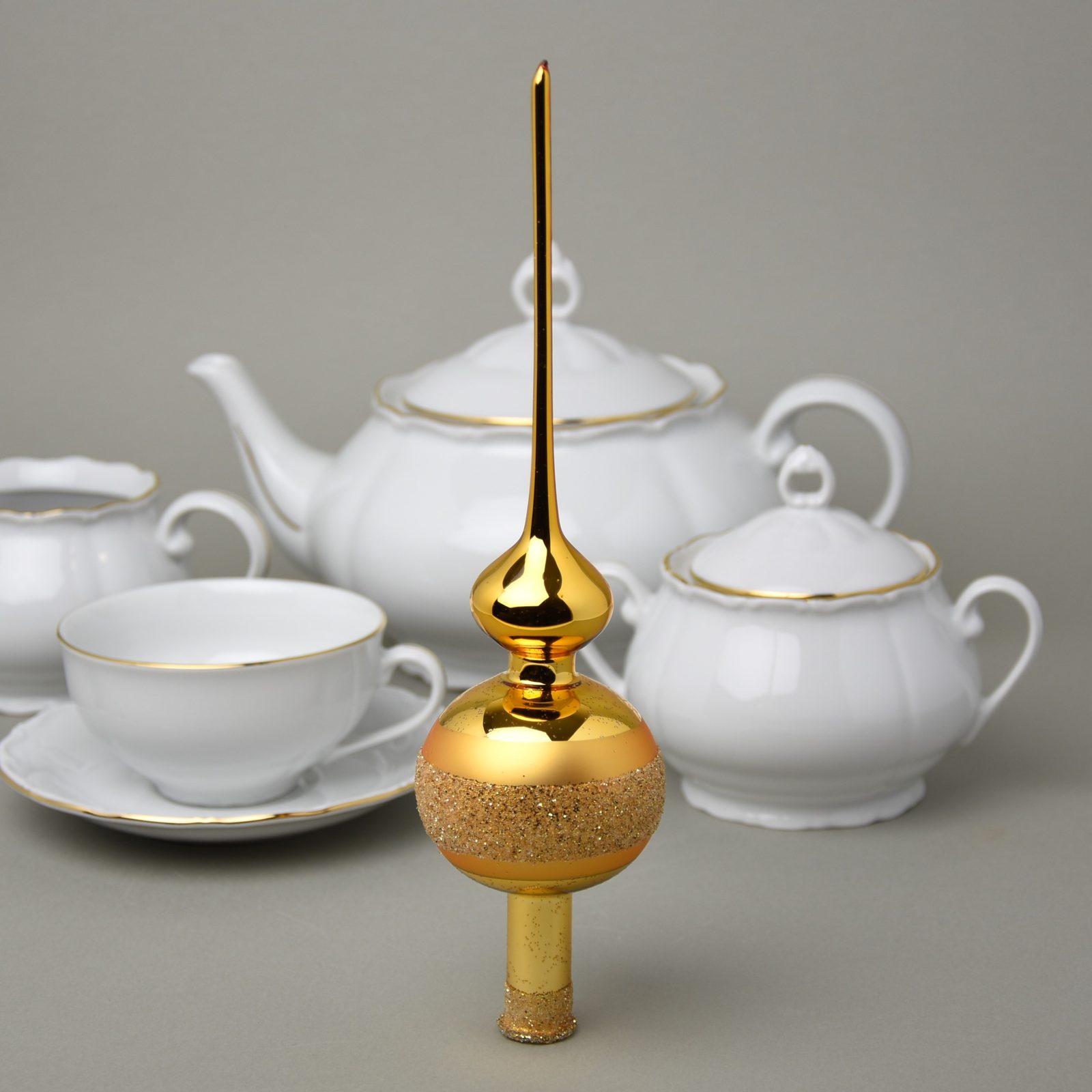 Vánoční skleněná ozdoba špička na stromeček 26 cm - ZLATÁ TMAVÁ, česká ruční práce
