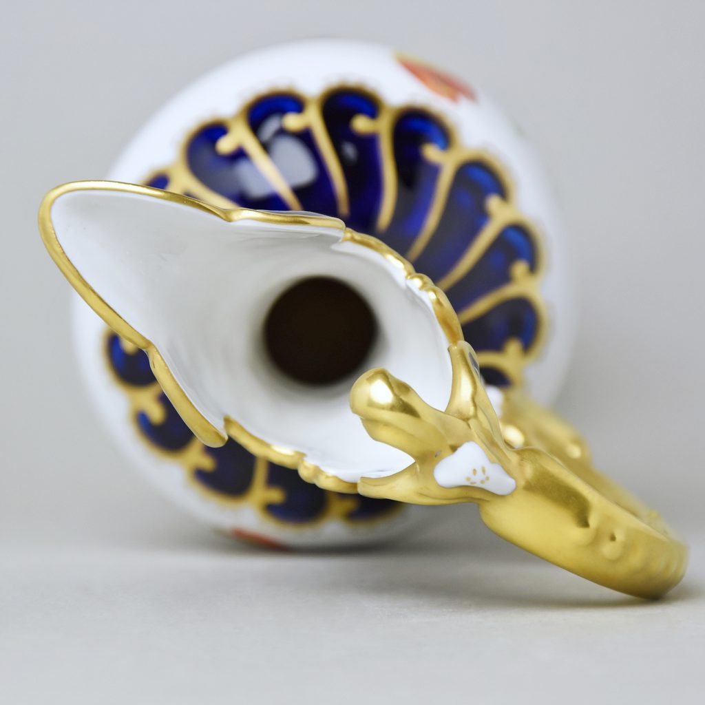Porcelánová velice zdobná luxusní váza / amfora s jedním uchem z tradiční české porcelánové dílny Duchcov (Royal Dux Bohemia). Tělo zdobeno barevným květinovým dekorem, bohatě zlacené.