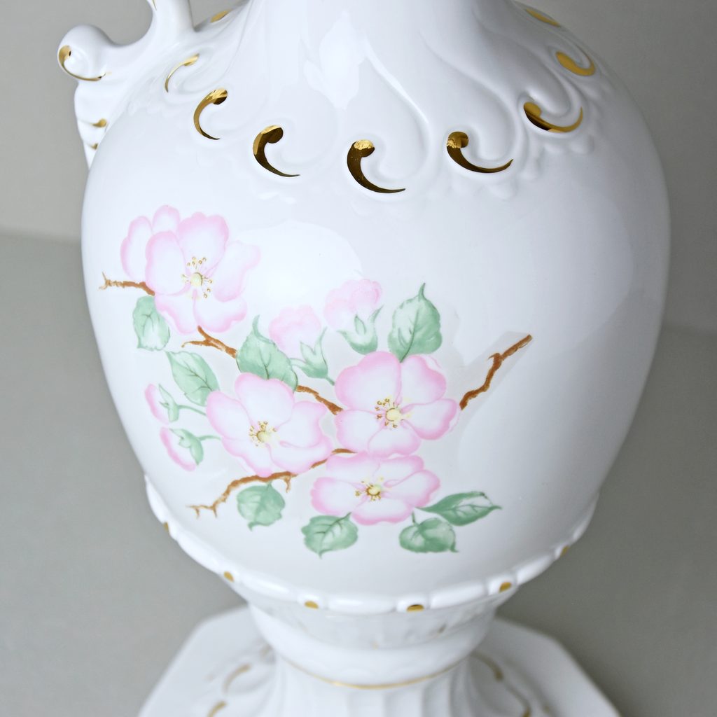 Porcelánová velice zdobná velká luxusní maxi váza z tradiční české porcelánové dílny Duchcov (Royal Dux Bohemia). Tělo zdobeno květinovým dekorem - šípková růže + zlacené detaily. Dekorativní váza/džbán do domácnosti.