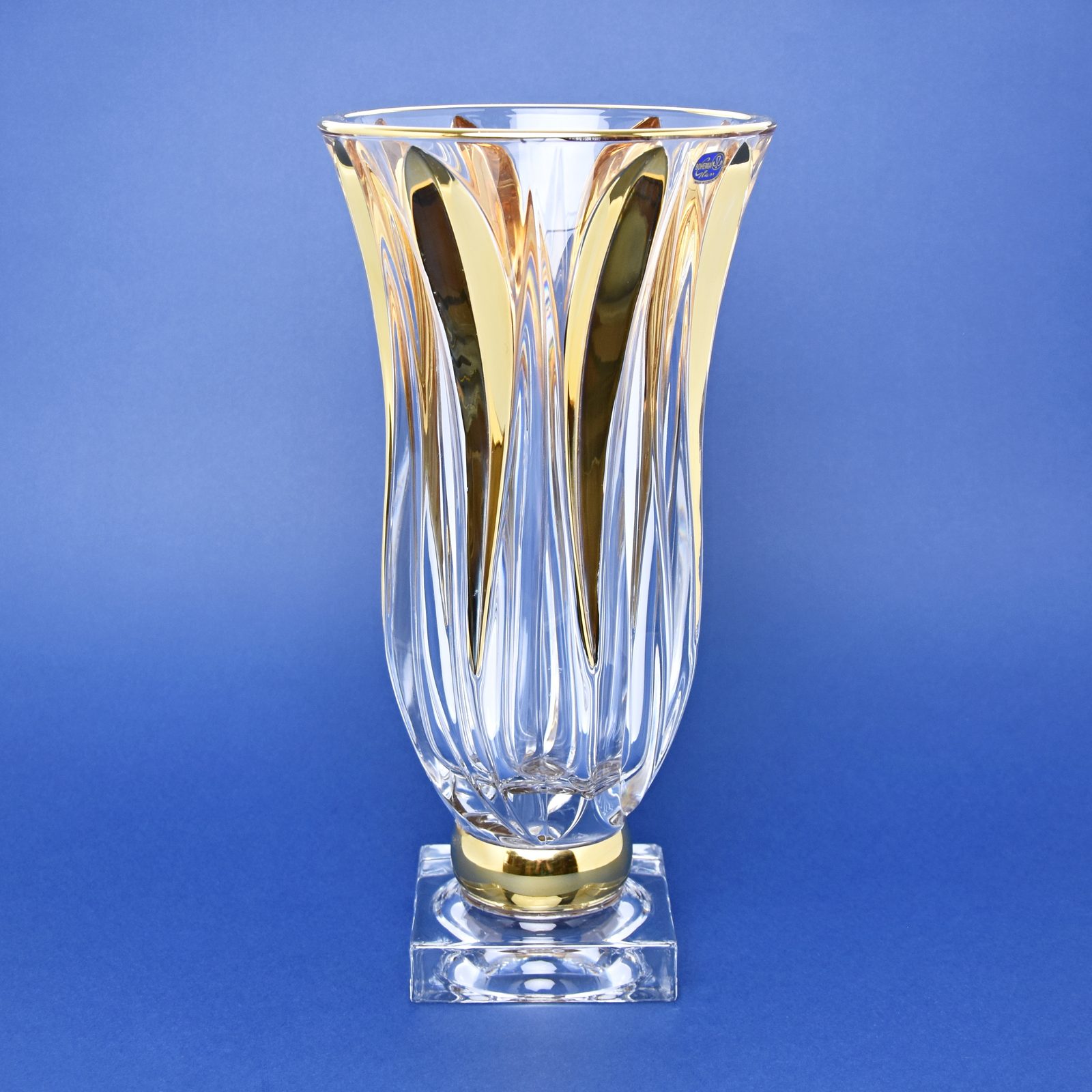Váza FLAME 35 cm na nožce, zlato, Crystal BOHEMIA