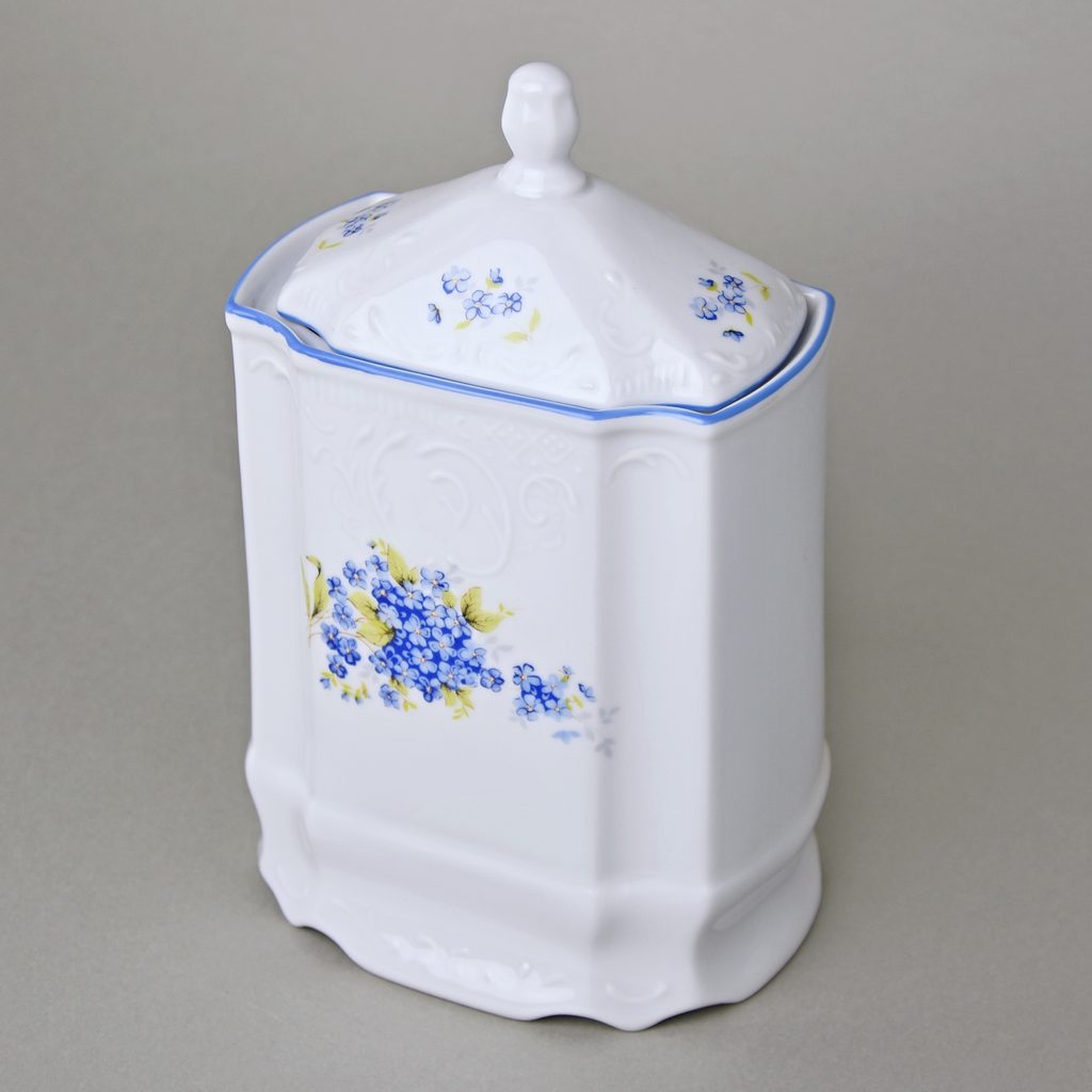 Víčko k dóze. Krásný květinový dekor Pomněnky.