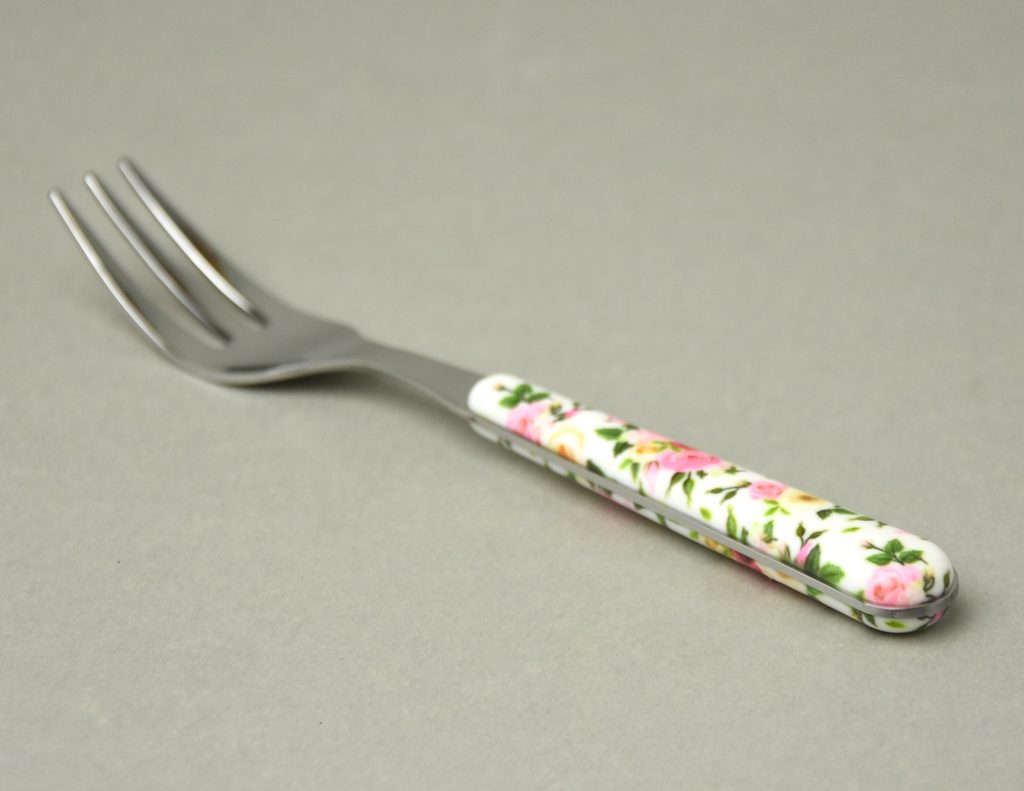 dezertní vidlička (vidlička na moučník), řada BISTROT ROSES, leštěno do vysokého lesku, nerezová ocel 18/10, plastová rukojeť, sublimovaný nesmytelný dekor