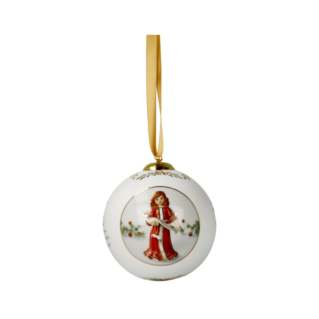 Výroční porcelánová koulička firmy Goebel s tradičním andílkem, 110 g, závěsná ozdoba nejen na stromeček, dekorace detailů zlatem