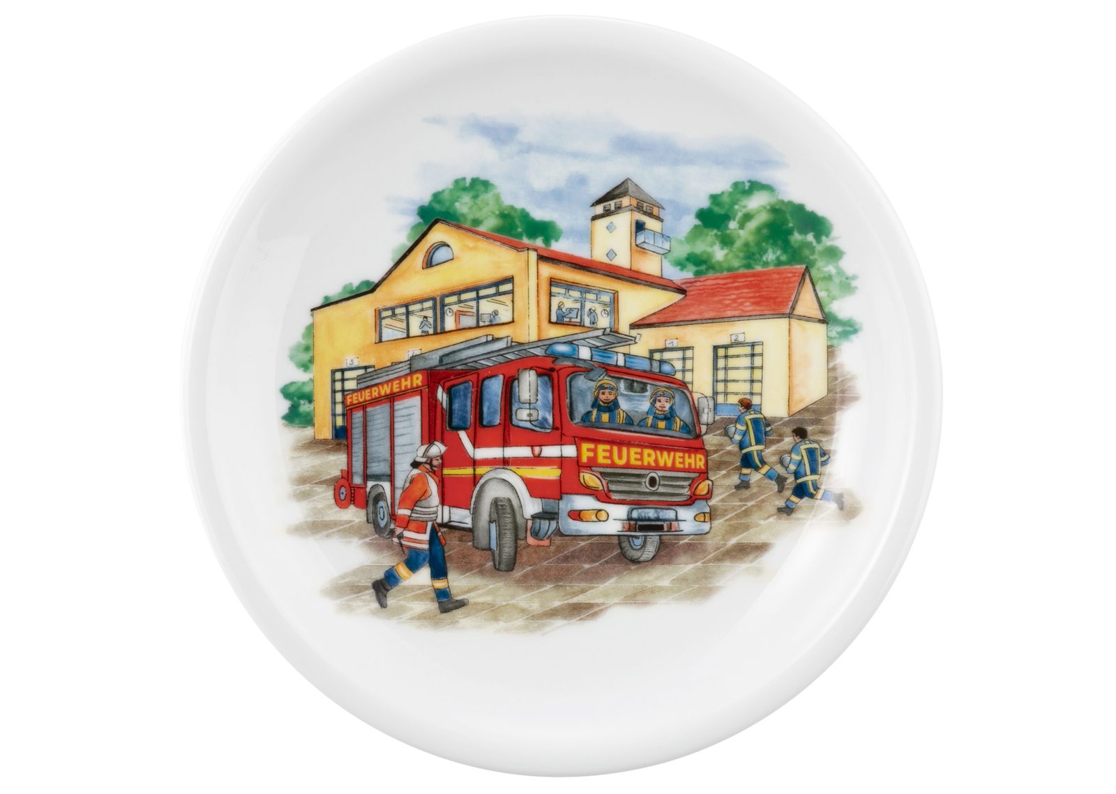 menší mělký / dezertní talíř 19 cm, kvalitní německý bytelný porcelán pro malé romantické záchranáře - řidiče a obsluhu hasičkých vozů, 254 g